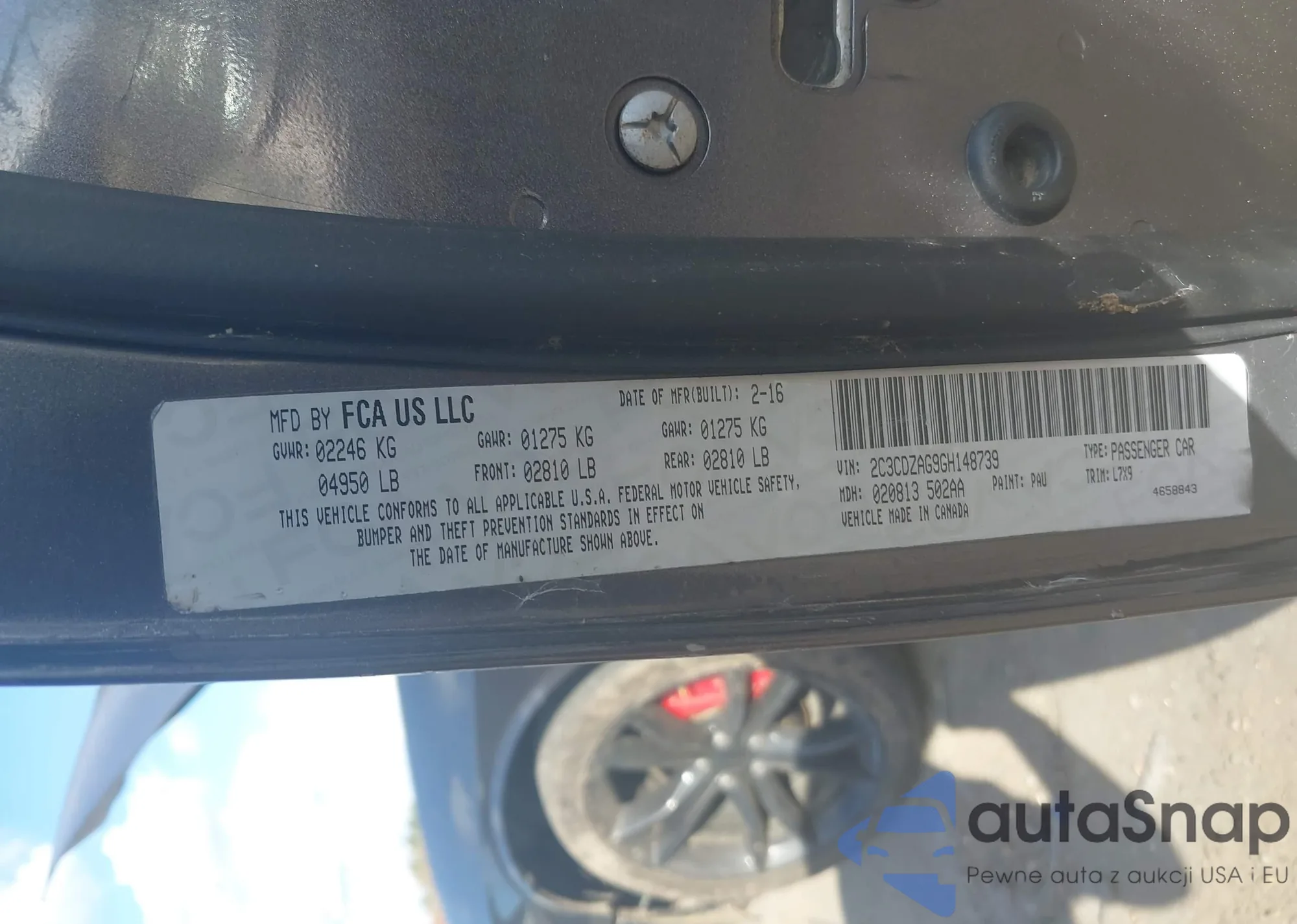 • VIN 2C3CDZAG9GH148739