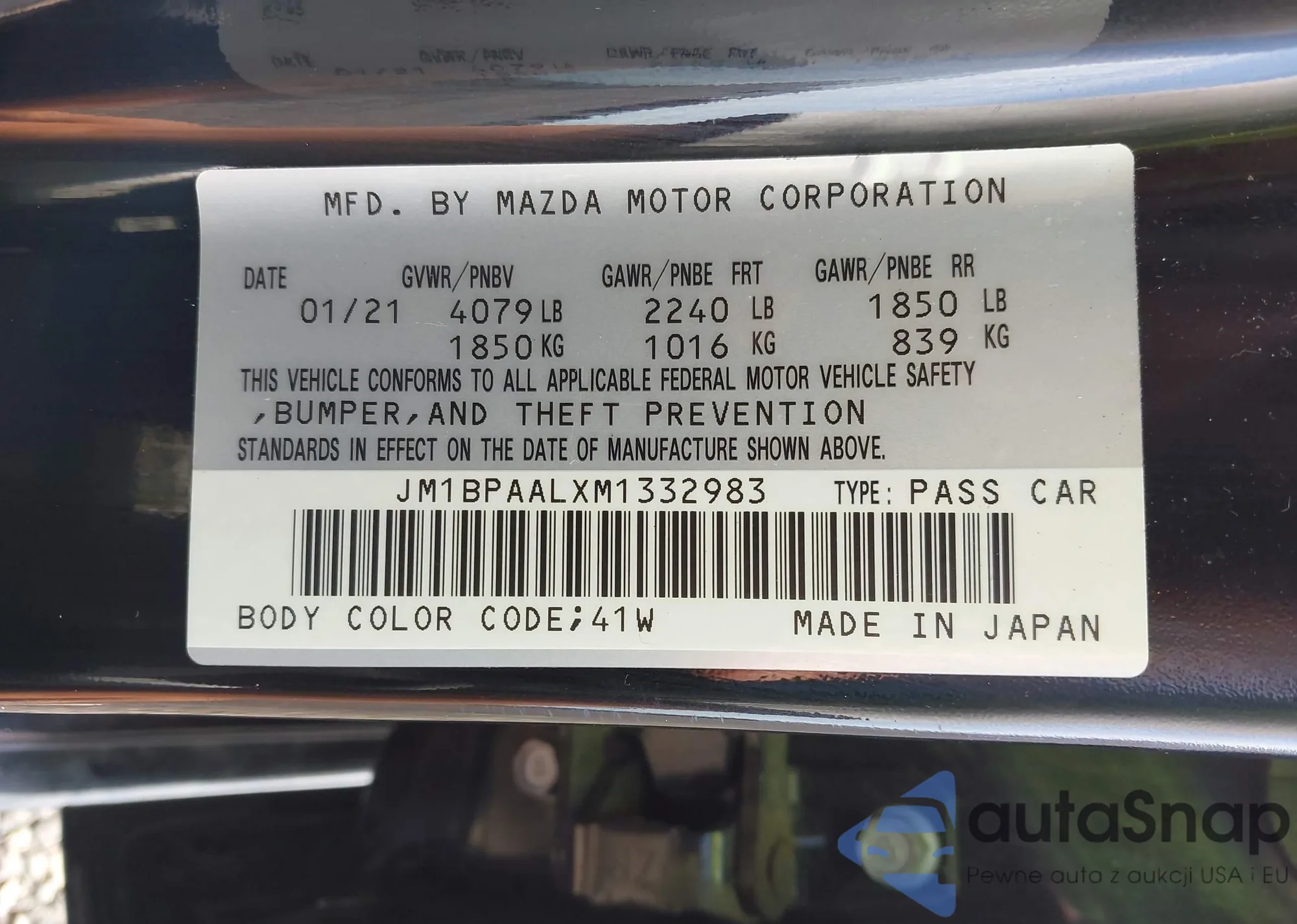 LOT: 43807849 VIN: JM1BPAALXM1332983