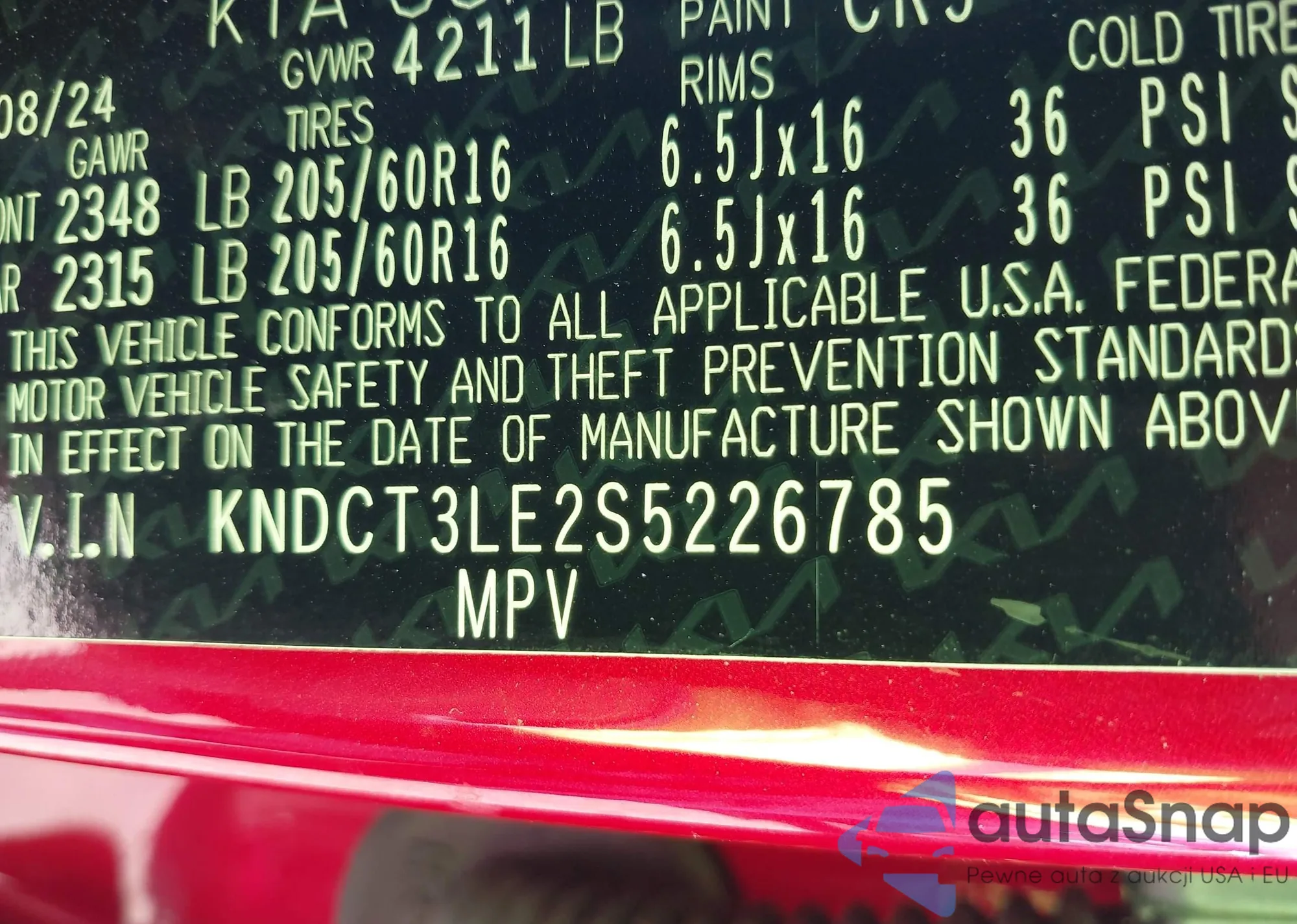 • VIN KNDCT3LE2S5226785