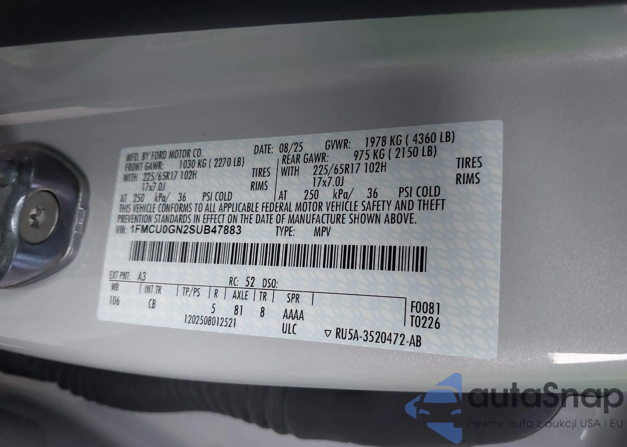 LOT: 43756814 VIN: 1FMCU0GN2SUB47883