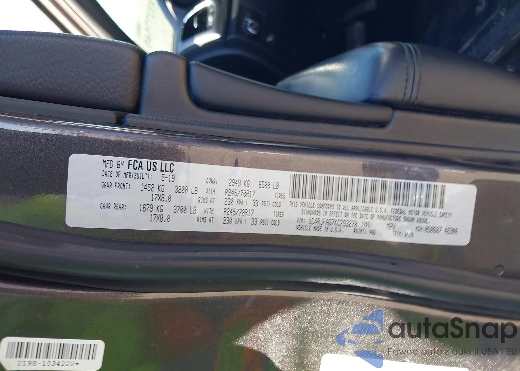 • VIN 1C4RJFAG7KC793270