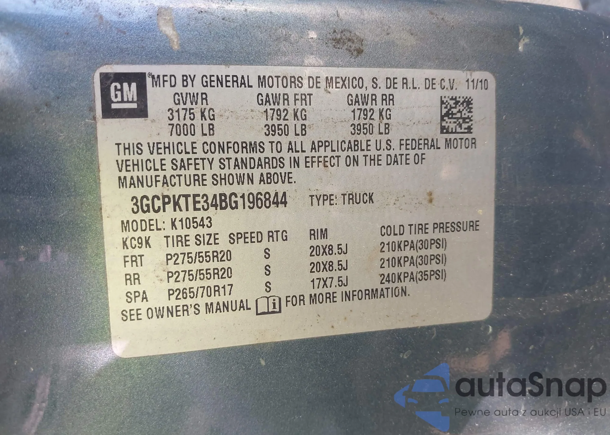 LOT: 43774285 VIN: 3GCPKTE34BG196844