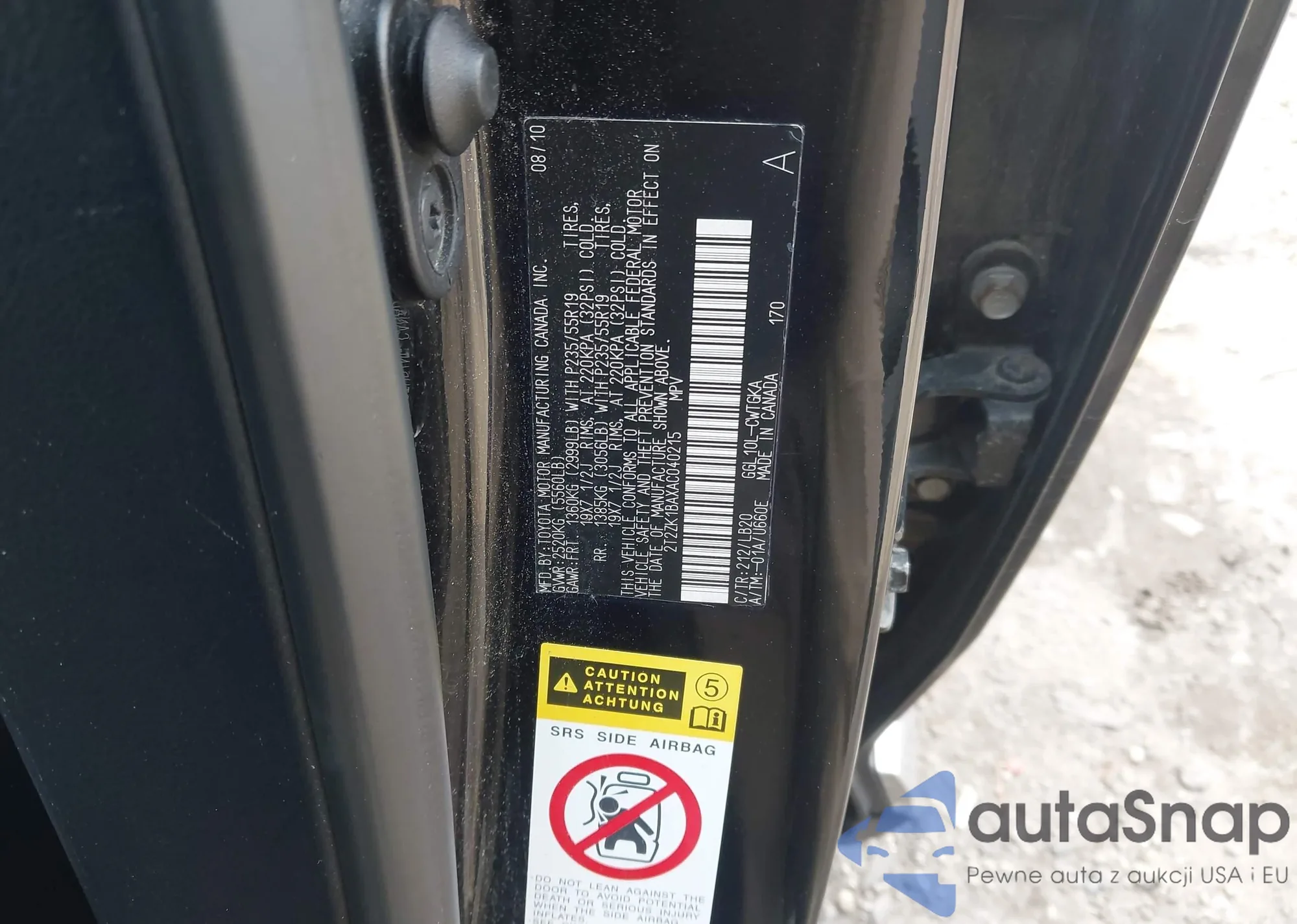 • VIN 2T2ZK1BAXAC040215