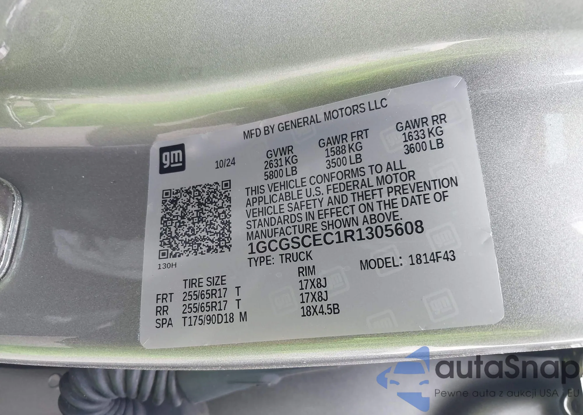 LOT: 43440631 VIN: 1GCGSCEC1R1305608