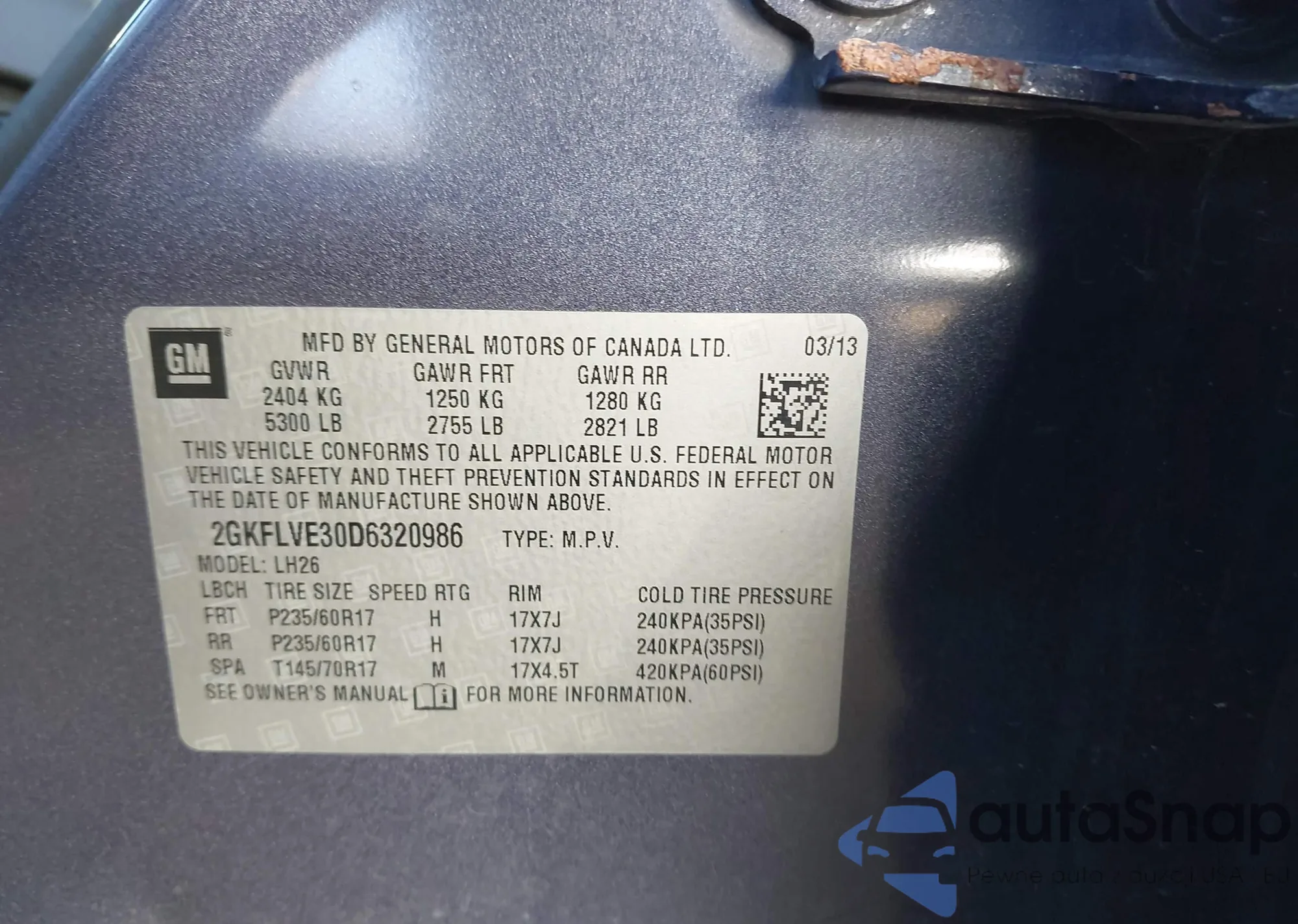 LOT: 43468286 VIN: 2GKFLVE30D6320986