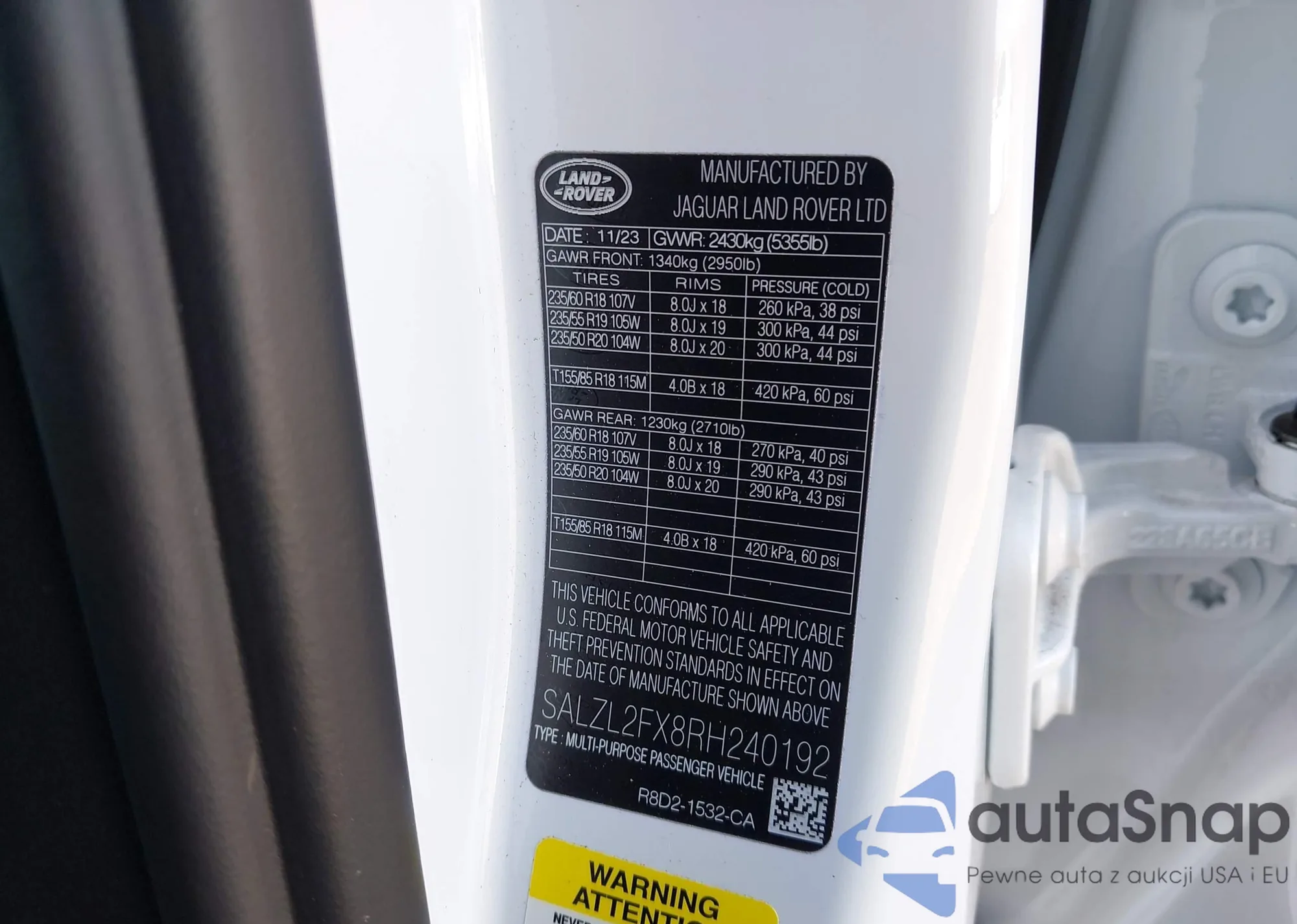 • VIN SALZL2FX8RH240192