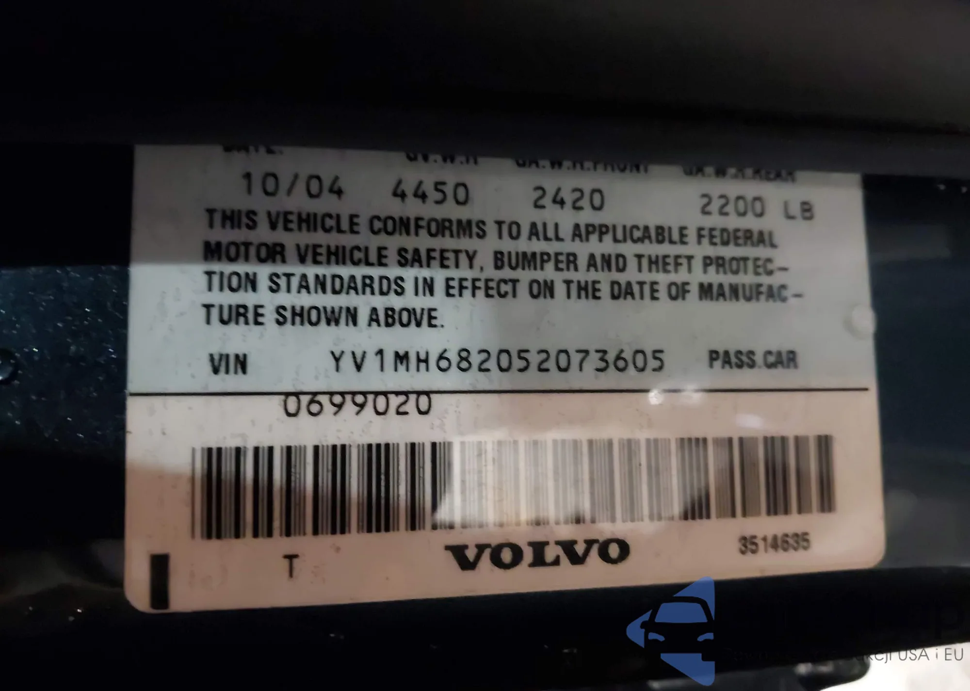 LOT: 43550706 VIN: YV1MH682052073605