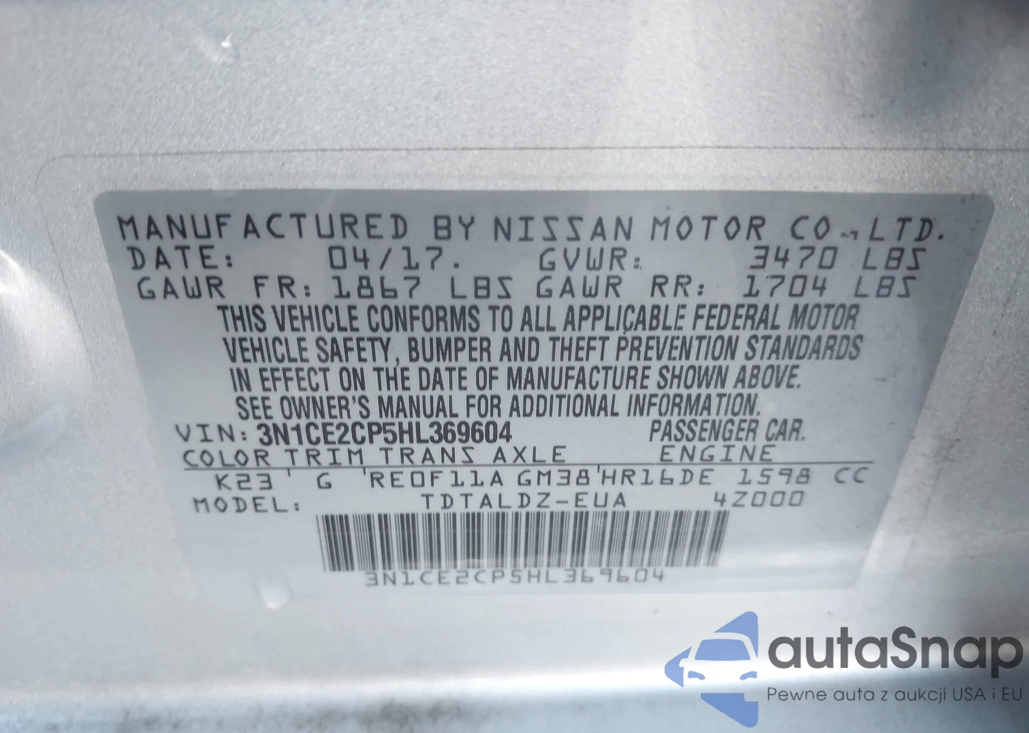 • VIN 3N1CE2CP5HL369604