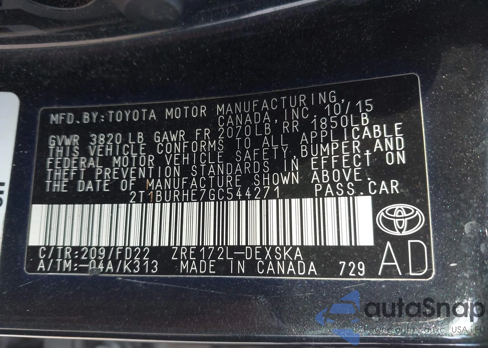 • VIN 2T1BURHE7GC544271