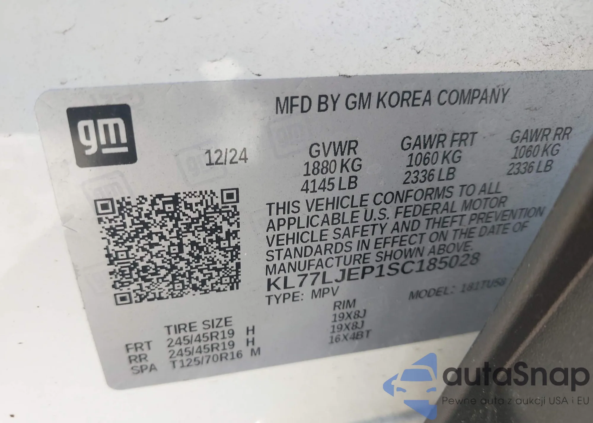 • VIN KL77LJEP1SC185028