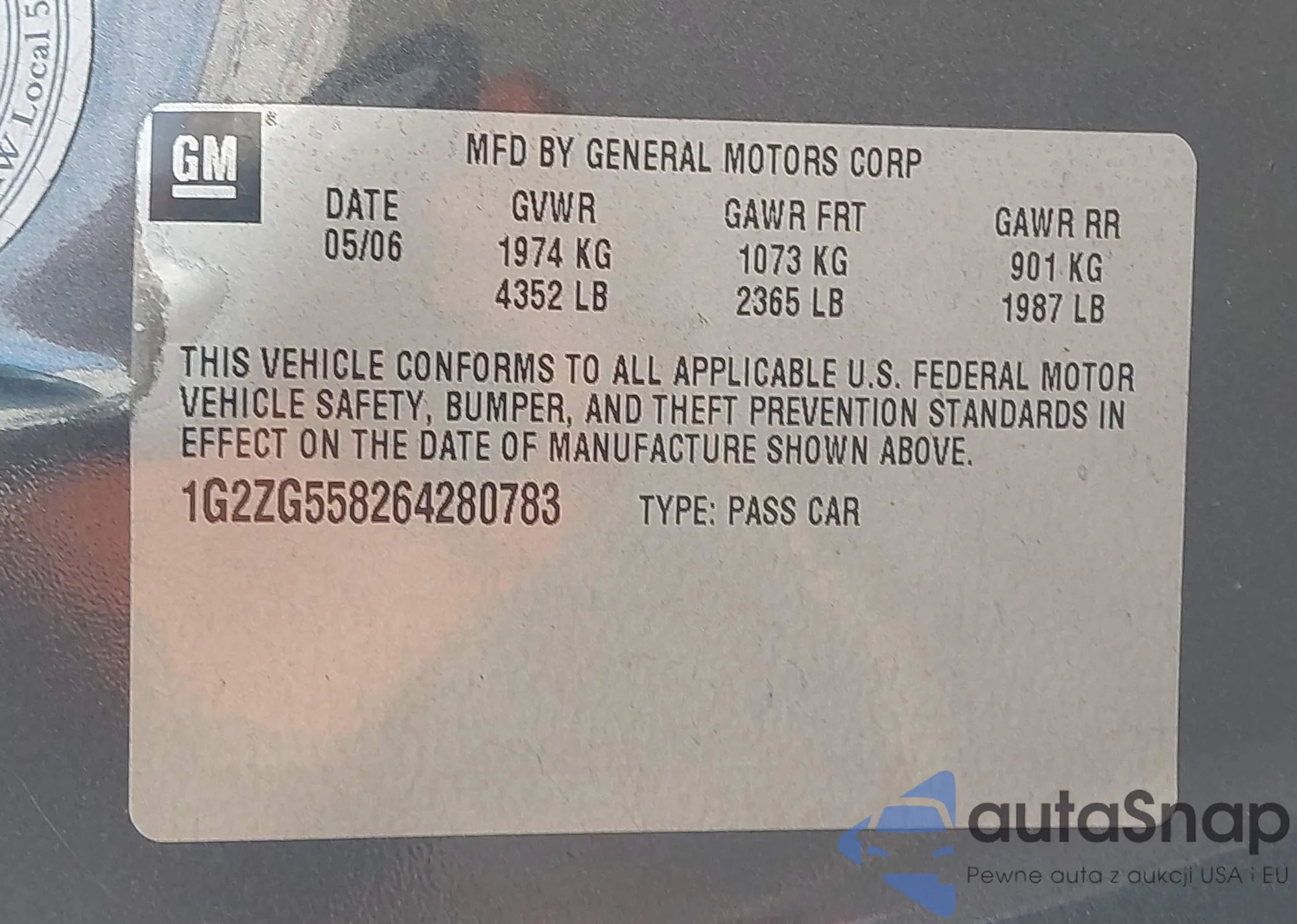 • VIN 1G8AL58F86Z203072