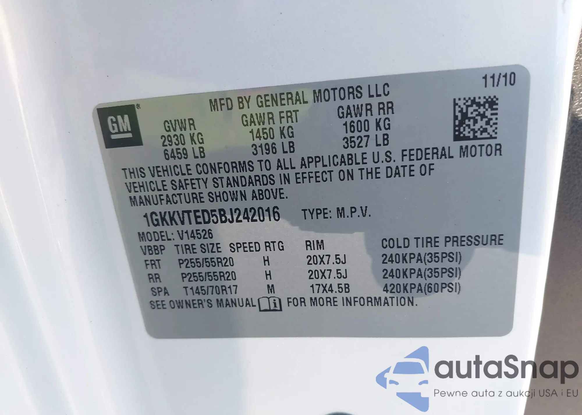 • VIN 1GKKNULS4HZ180691