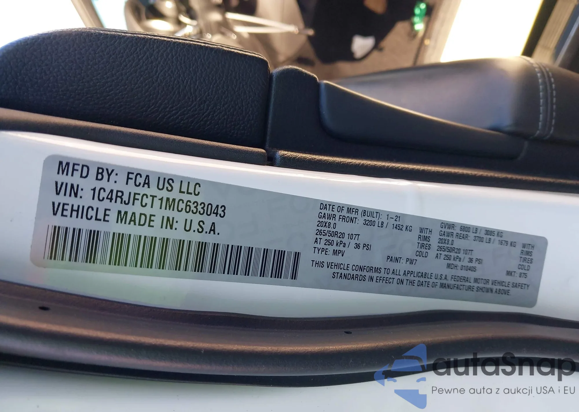 • VIN 1C4RJFCT1MC633043