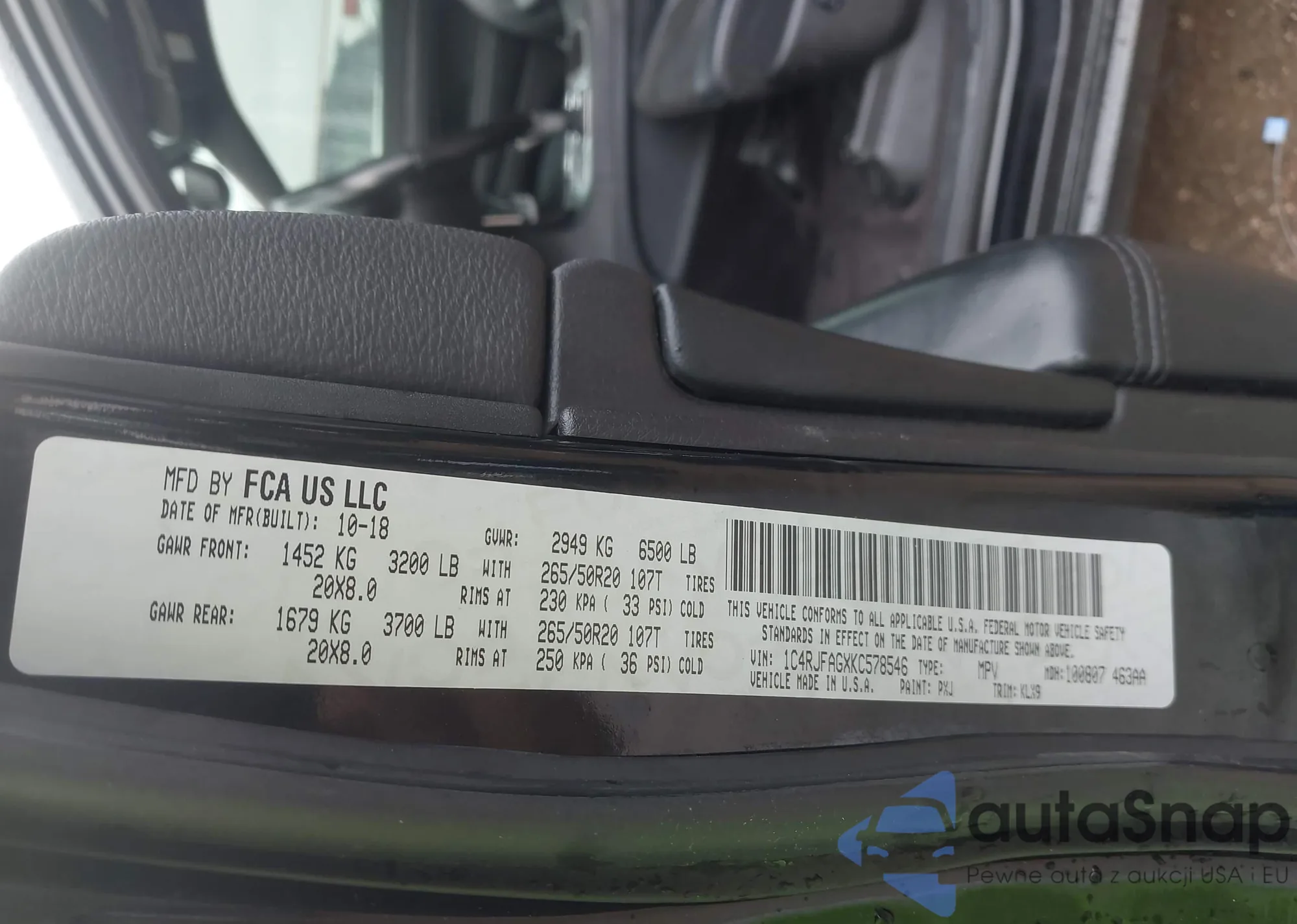 • VIN 1C4RJFAGXKC578546