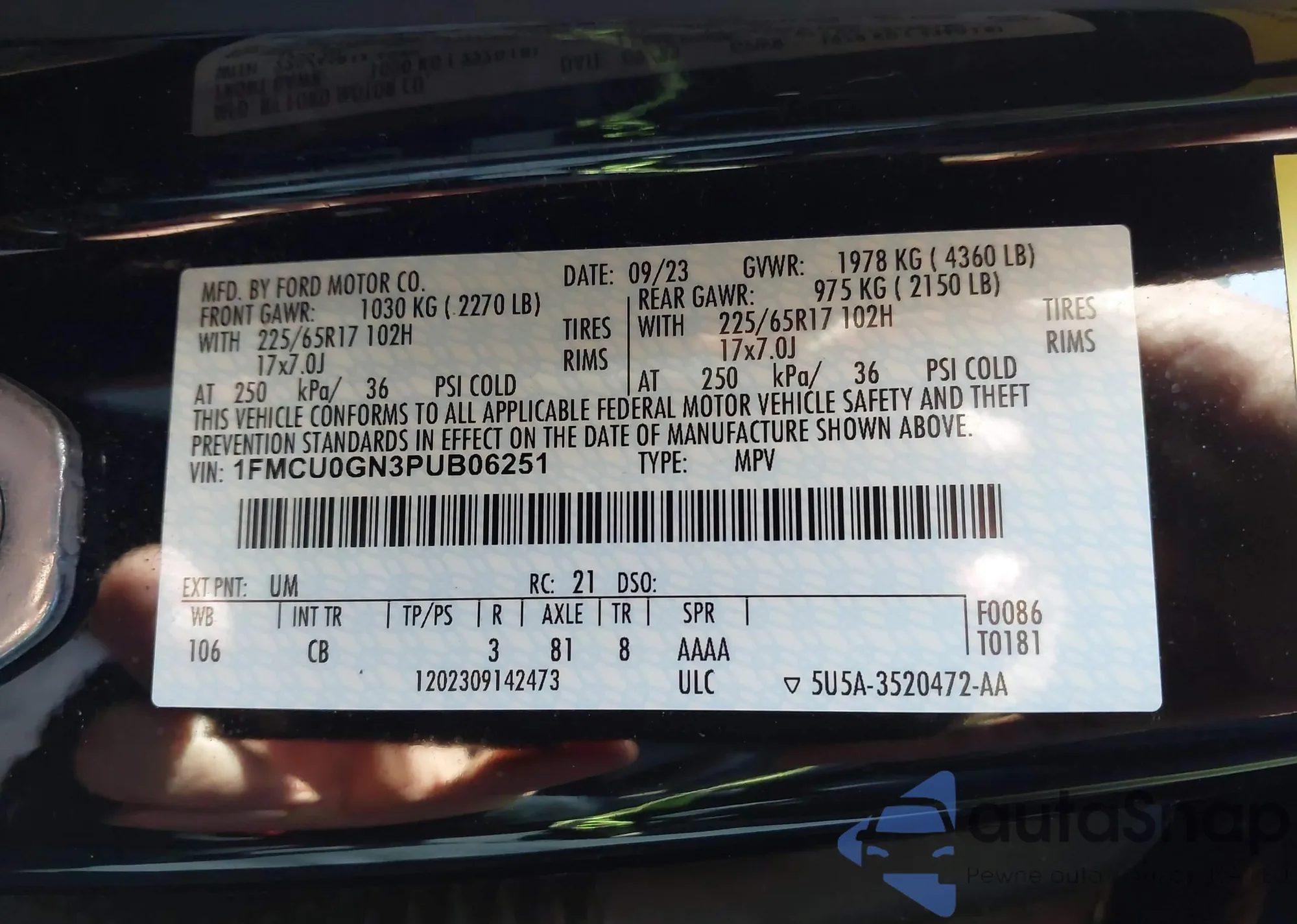LOT: 43976257 VIN: WMWMF3C59ATZ66062