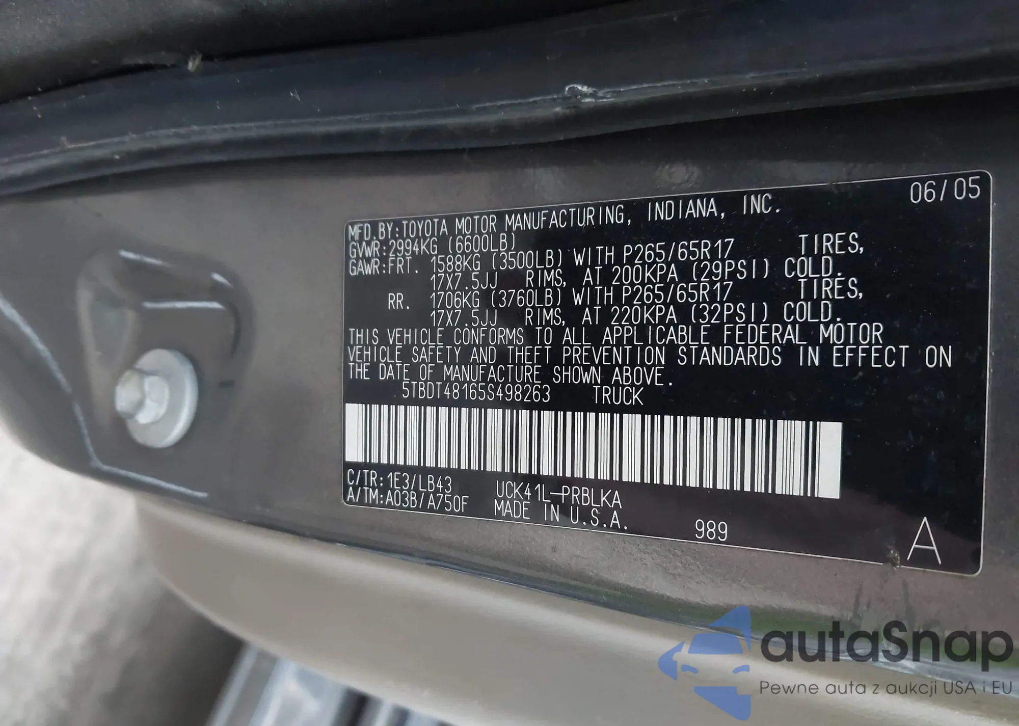 LOT: 43915041 VIN: 5TBDT48165S498263