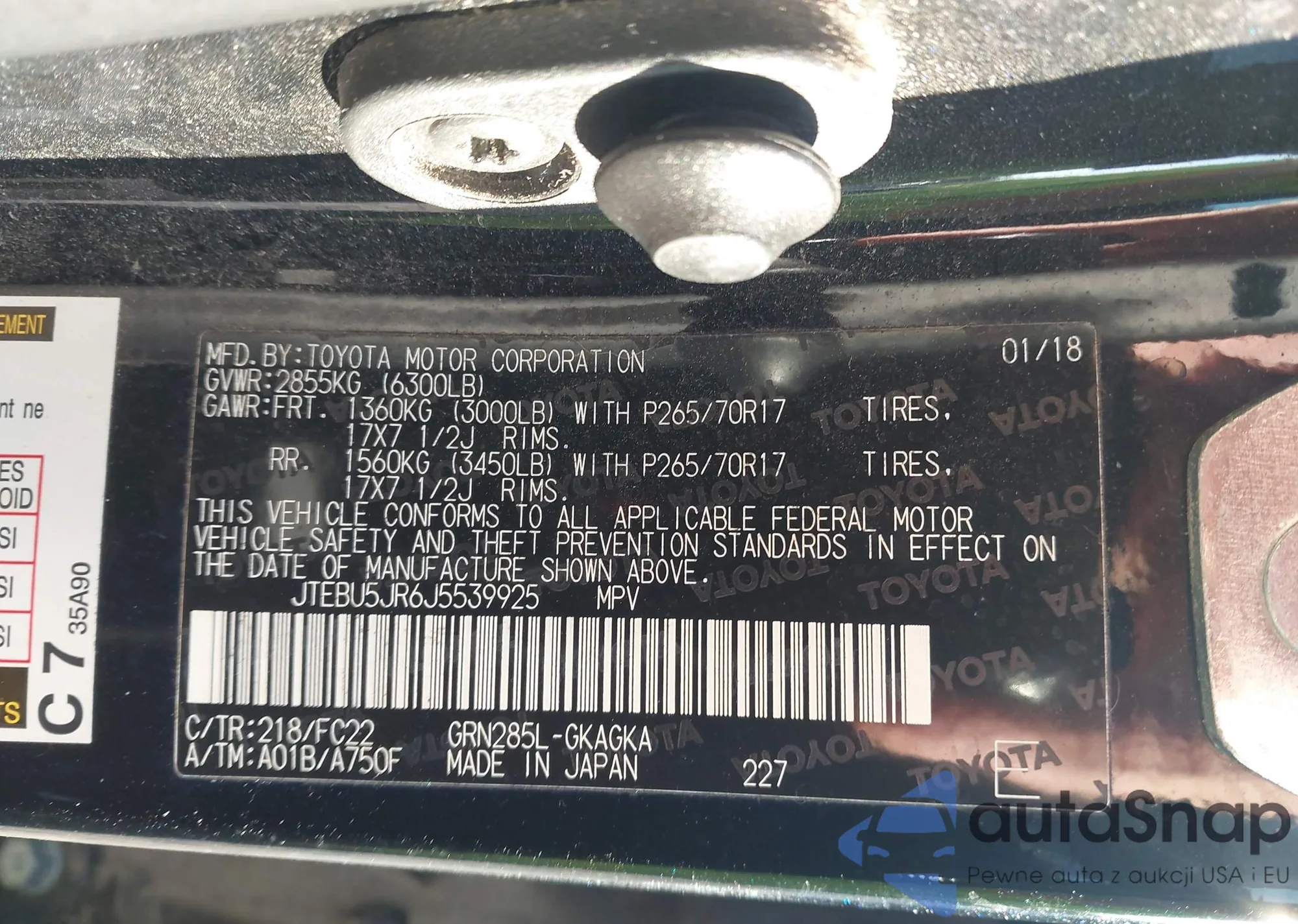 LOT: 43918948 VIN: JTEBU5JR6J5539925
