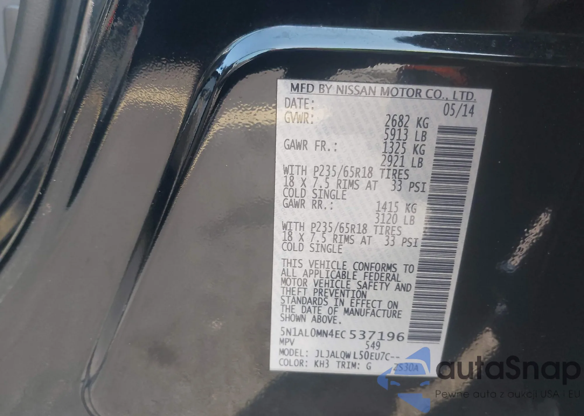 • VIN 5N1AL0MN4EC537196