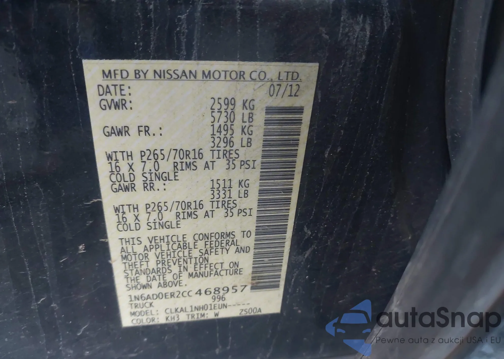 • VIN 1N6AD0ER2CC468957