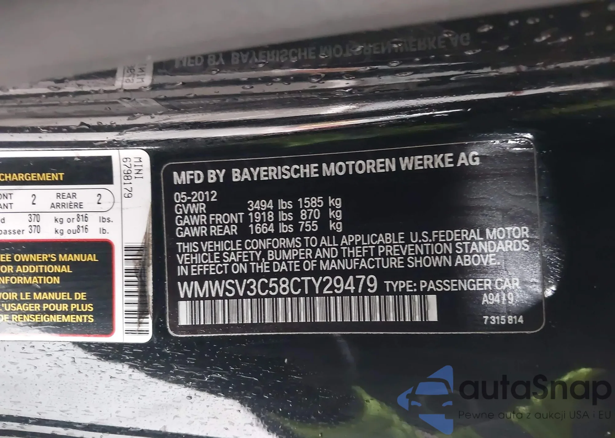 • VIN WMWSV3C58CTY29479