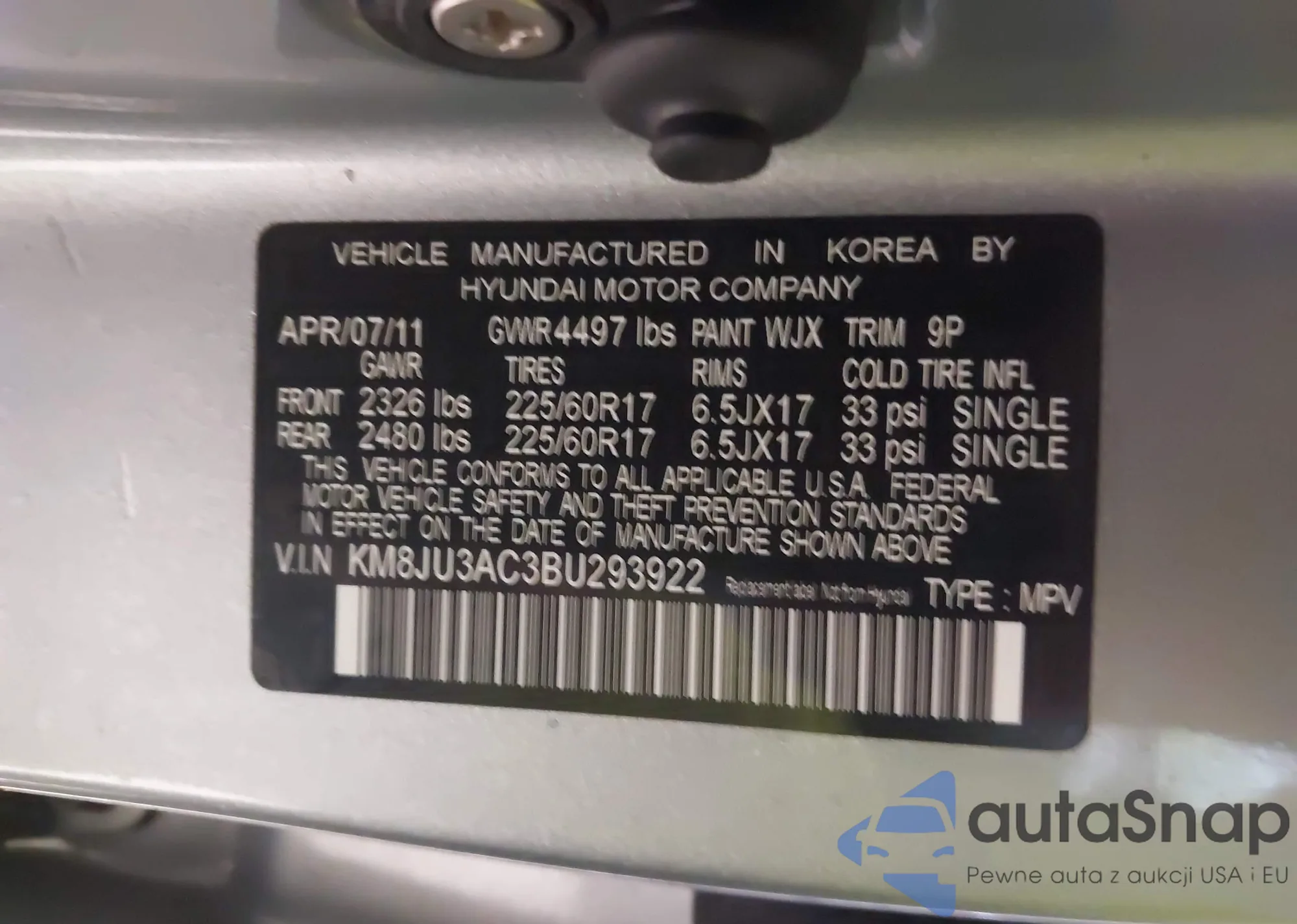 • VIN KM8JU3AC3BU293922