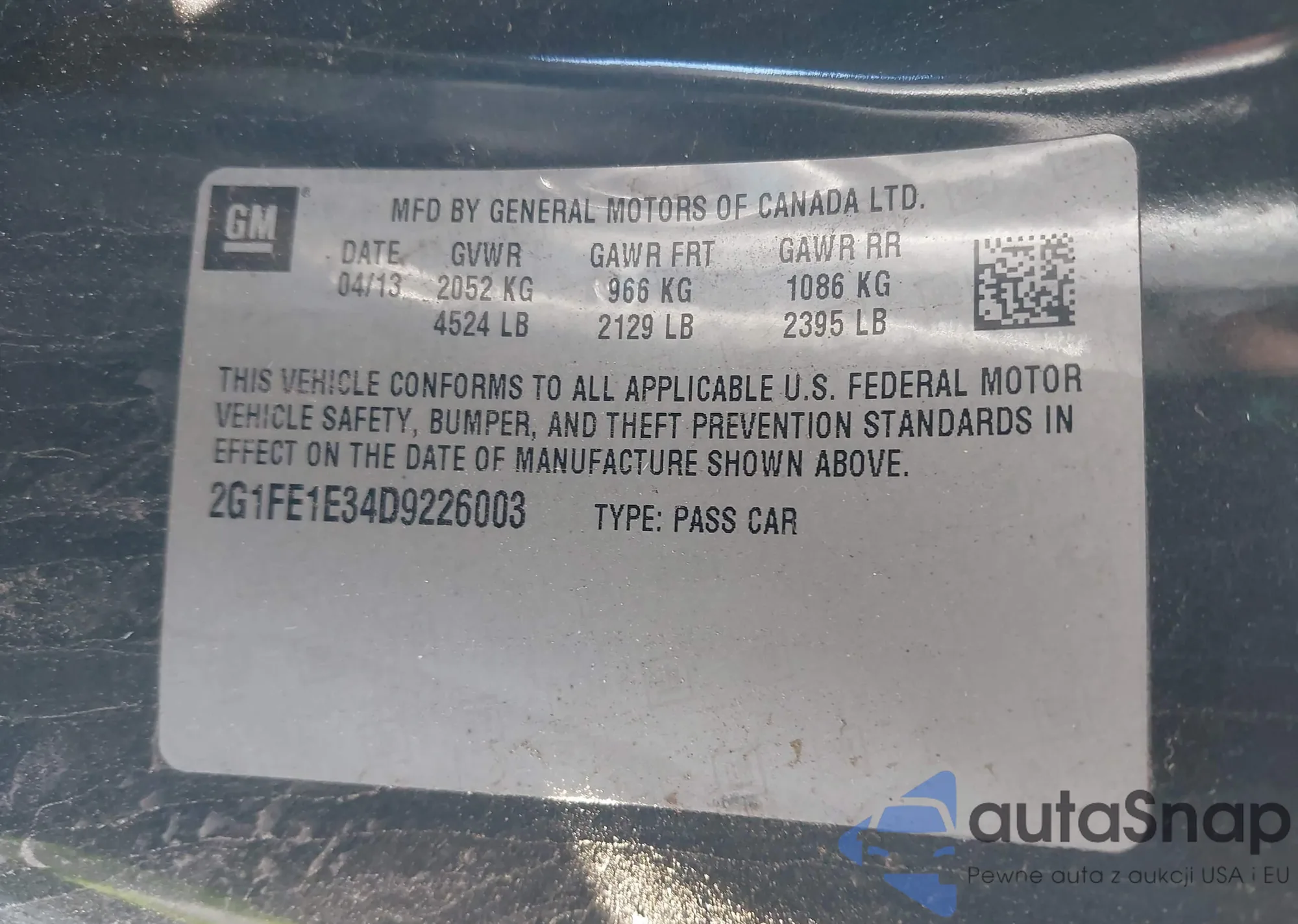 • VIN 2G1FE1E34D9226003