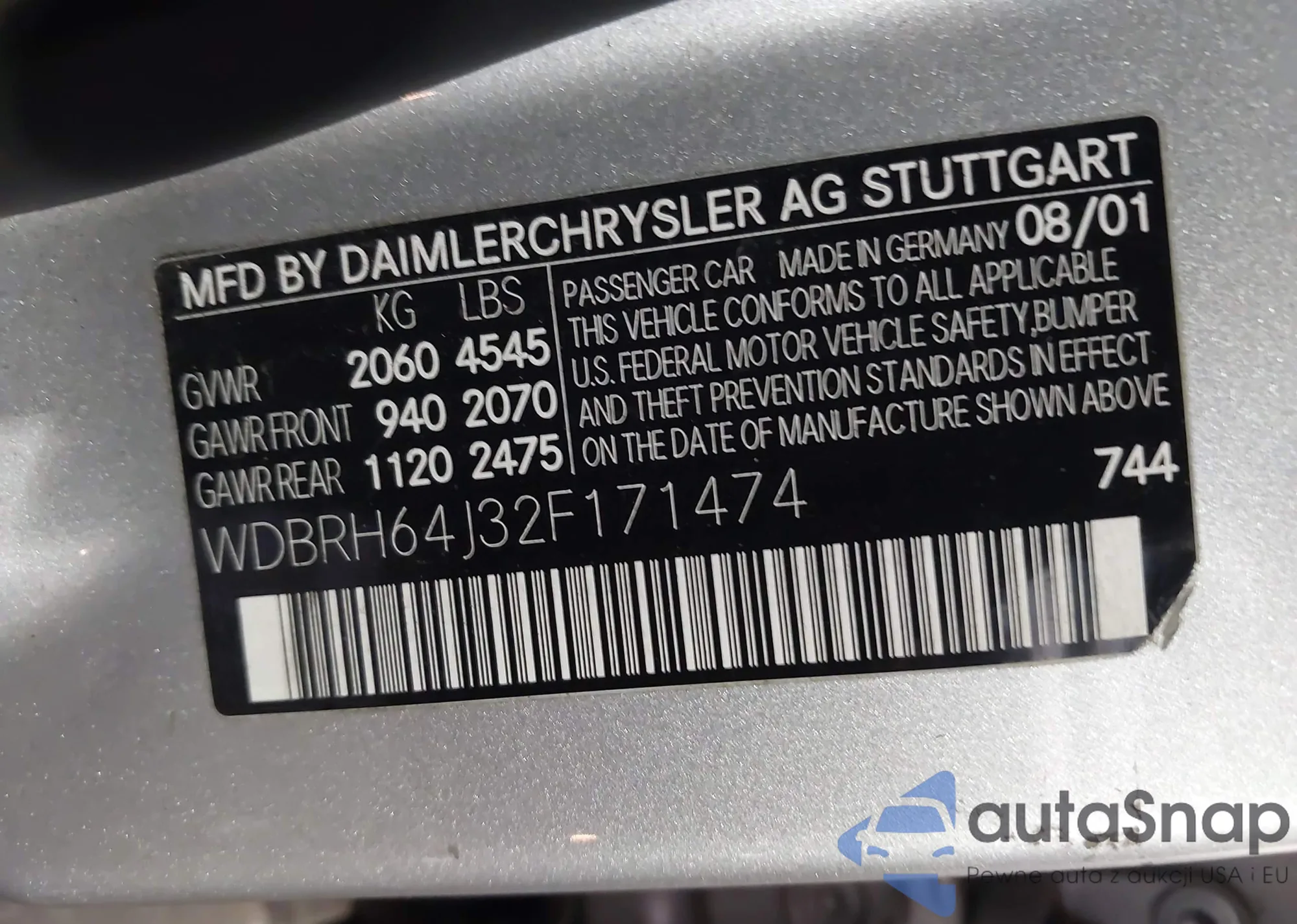 • VIN WDBRH64J32F171474