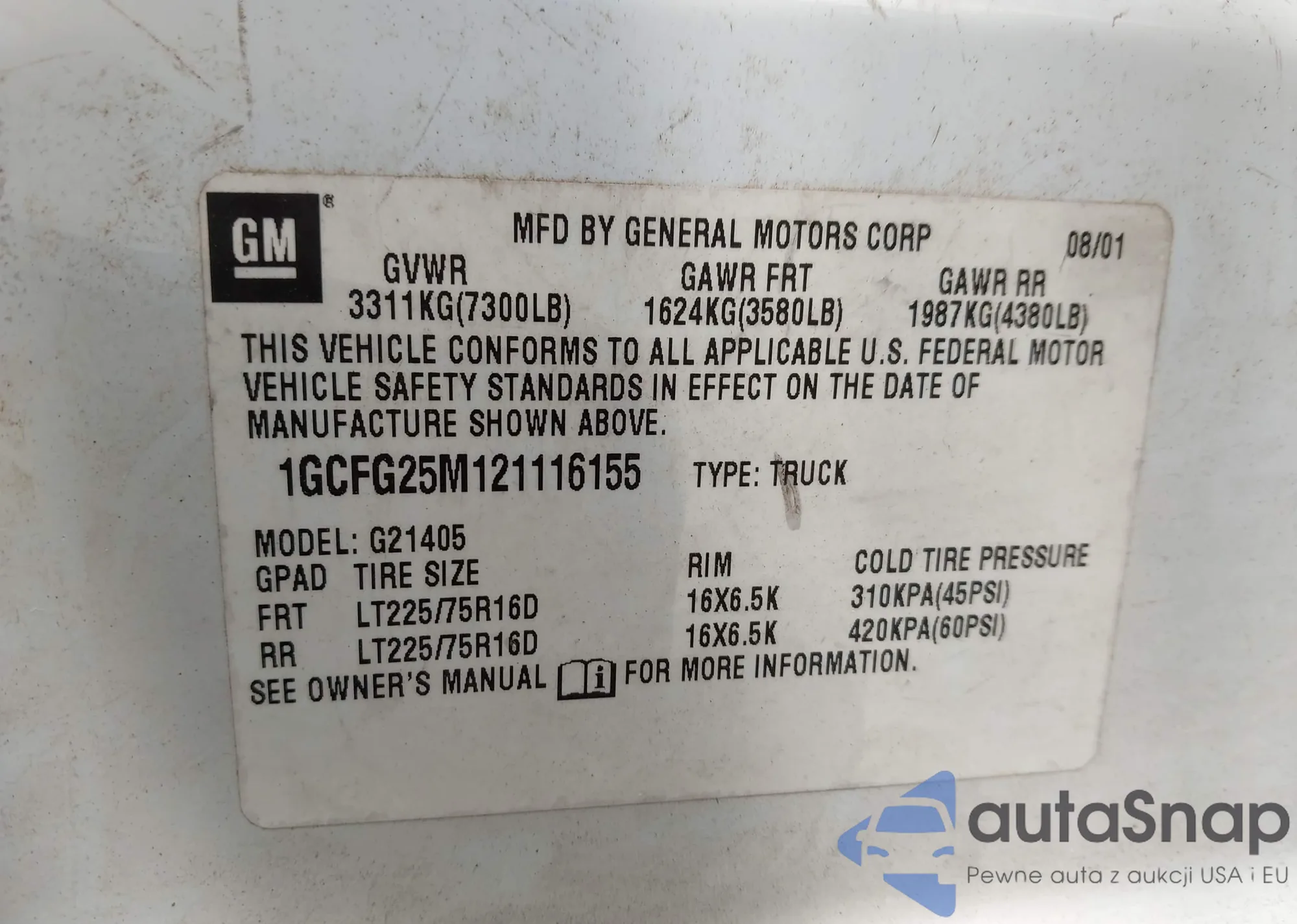 LOT: 43724196 VIN: 1GNDT13S972306387