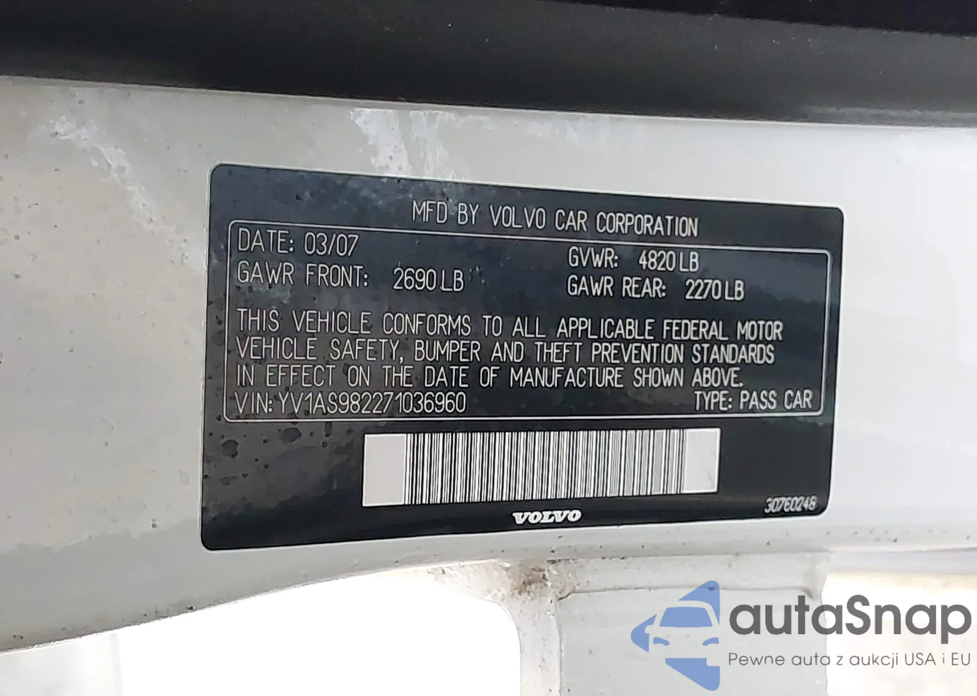 LOT: 43930901 VIN: YV1CZ592151160811