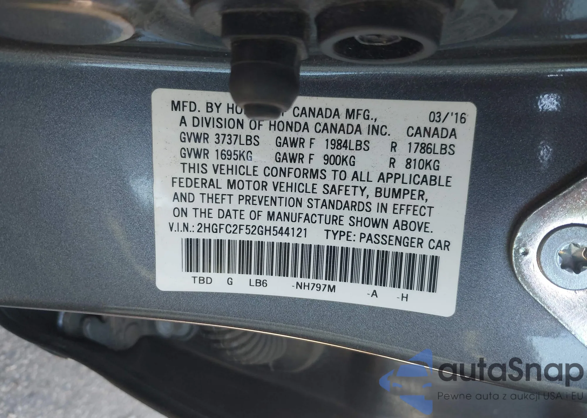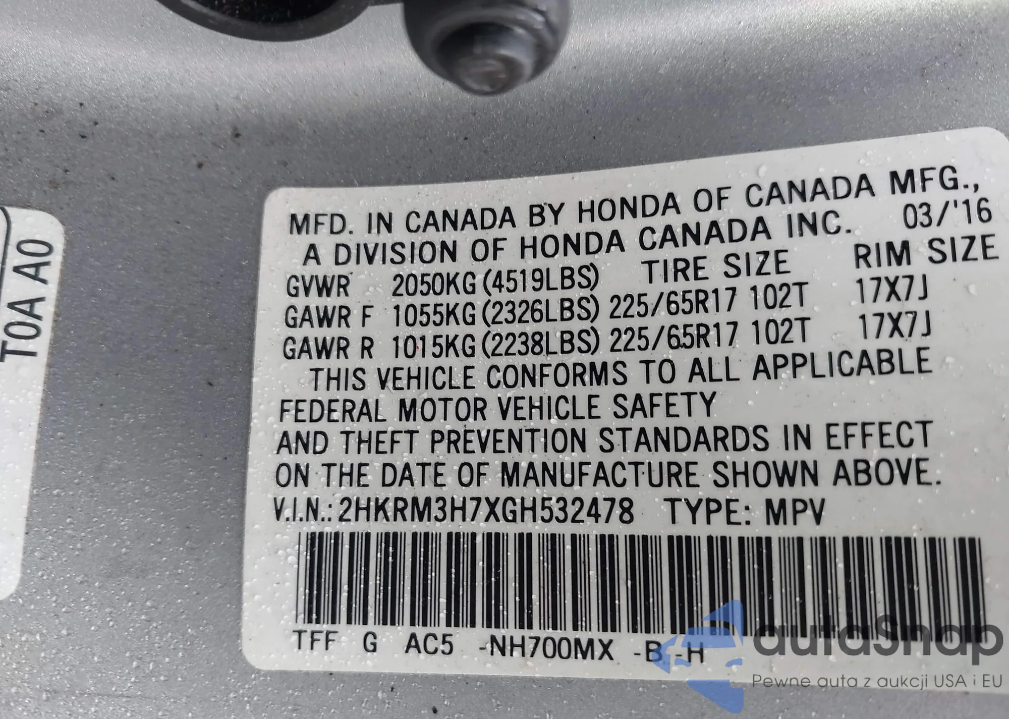 • VIN 2HKRM3H7XGH532478