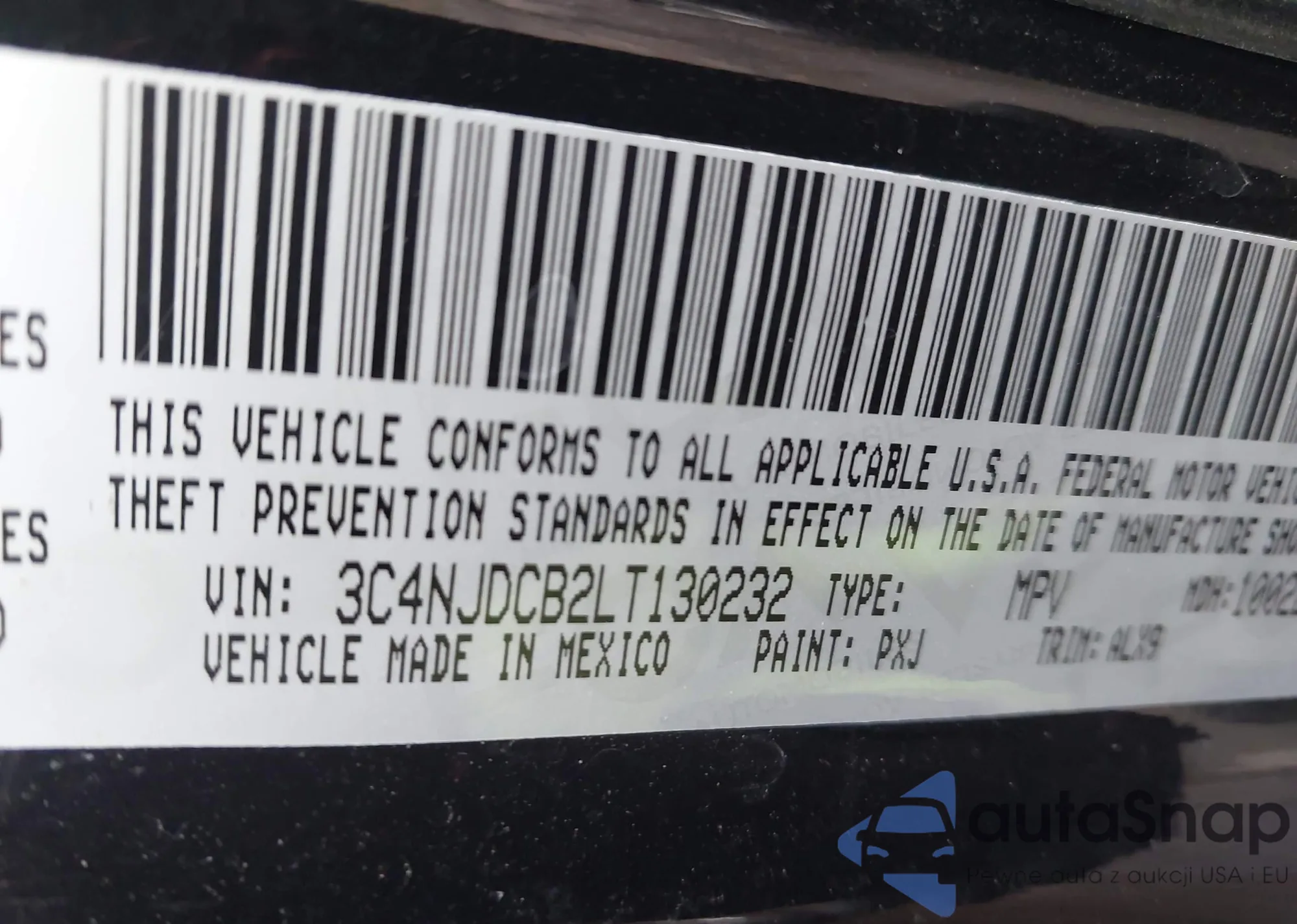 • VIN 3C4NJDCB2LT130232