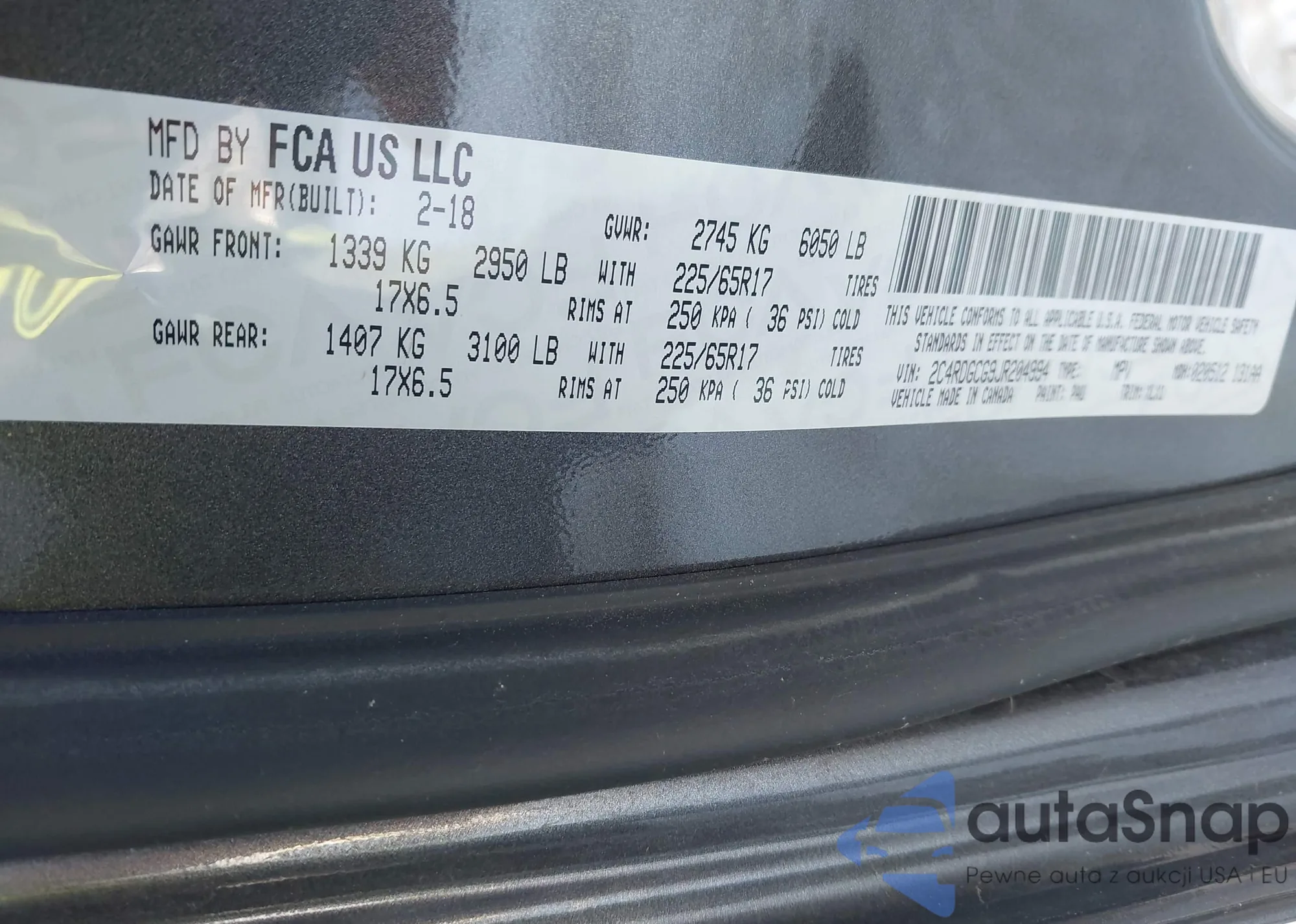 • VIN 2C4RDGCG9JR204994