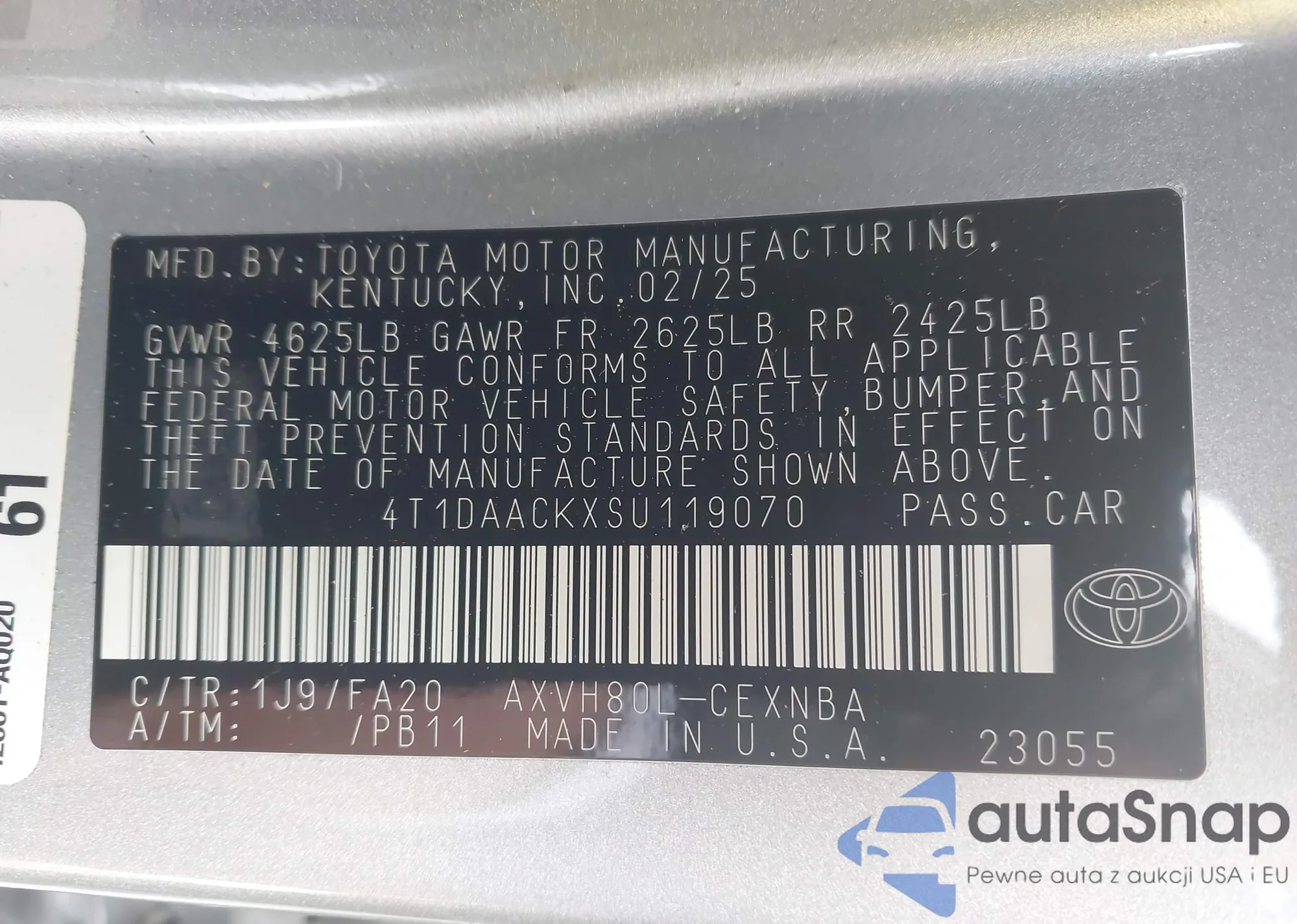 LOT: 43791445 VIN: 4T1DAACKXSU119070
