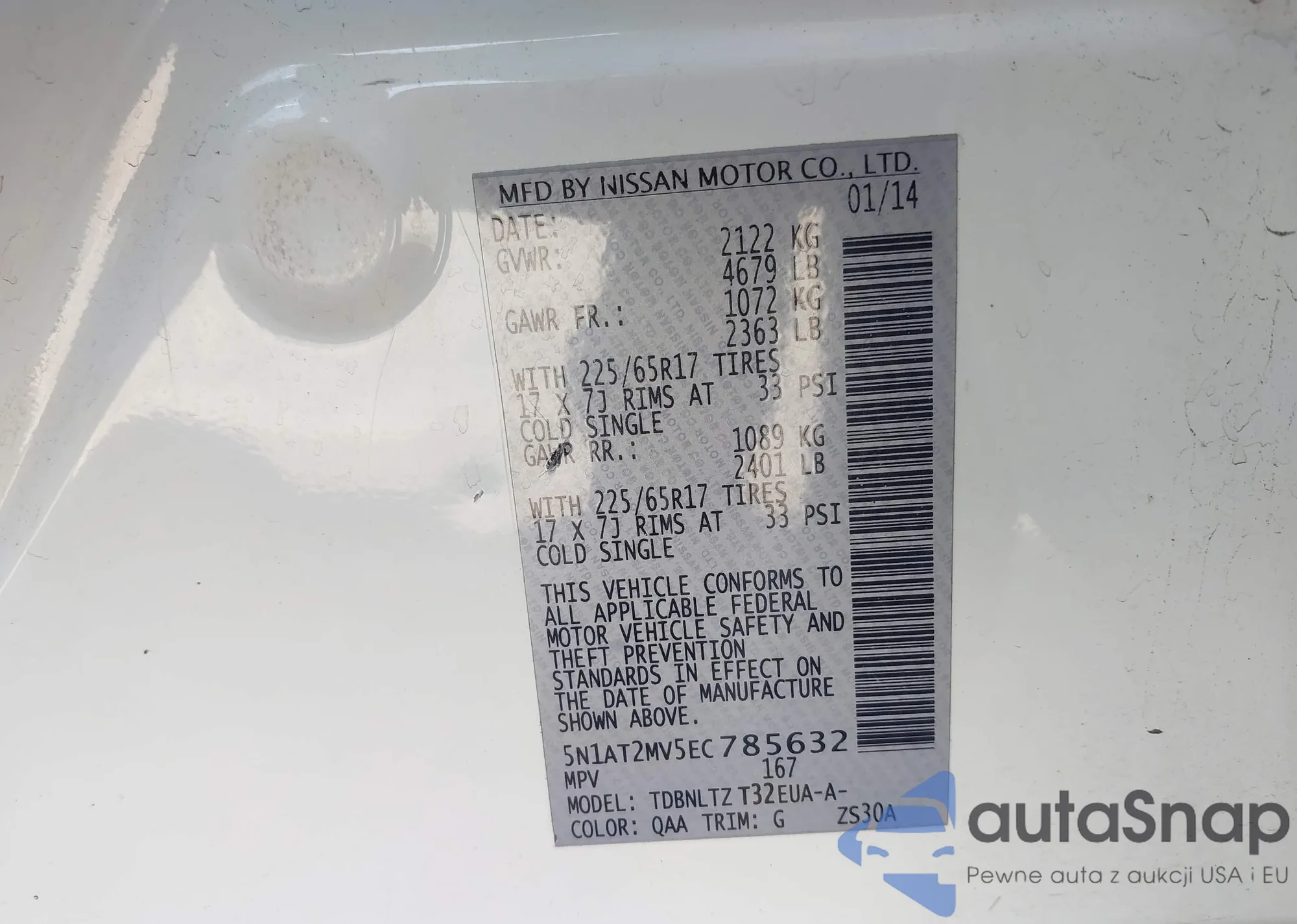LOT: 43994029 VIN: 5N1AT2MV5EC785632