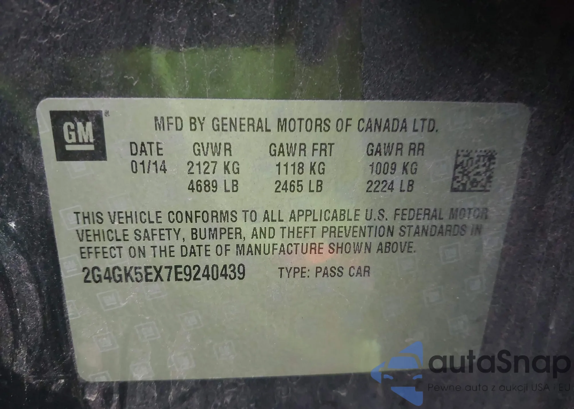 • VIN 2G4GK5EX7E9240439