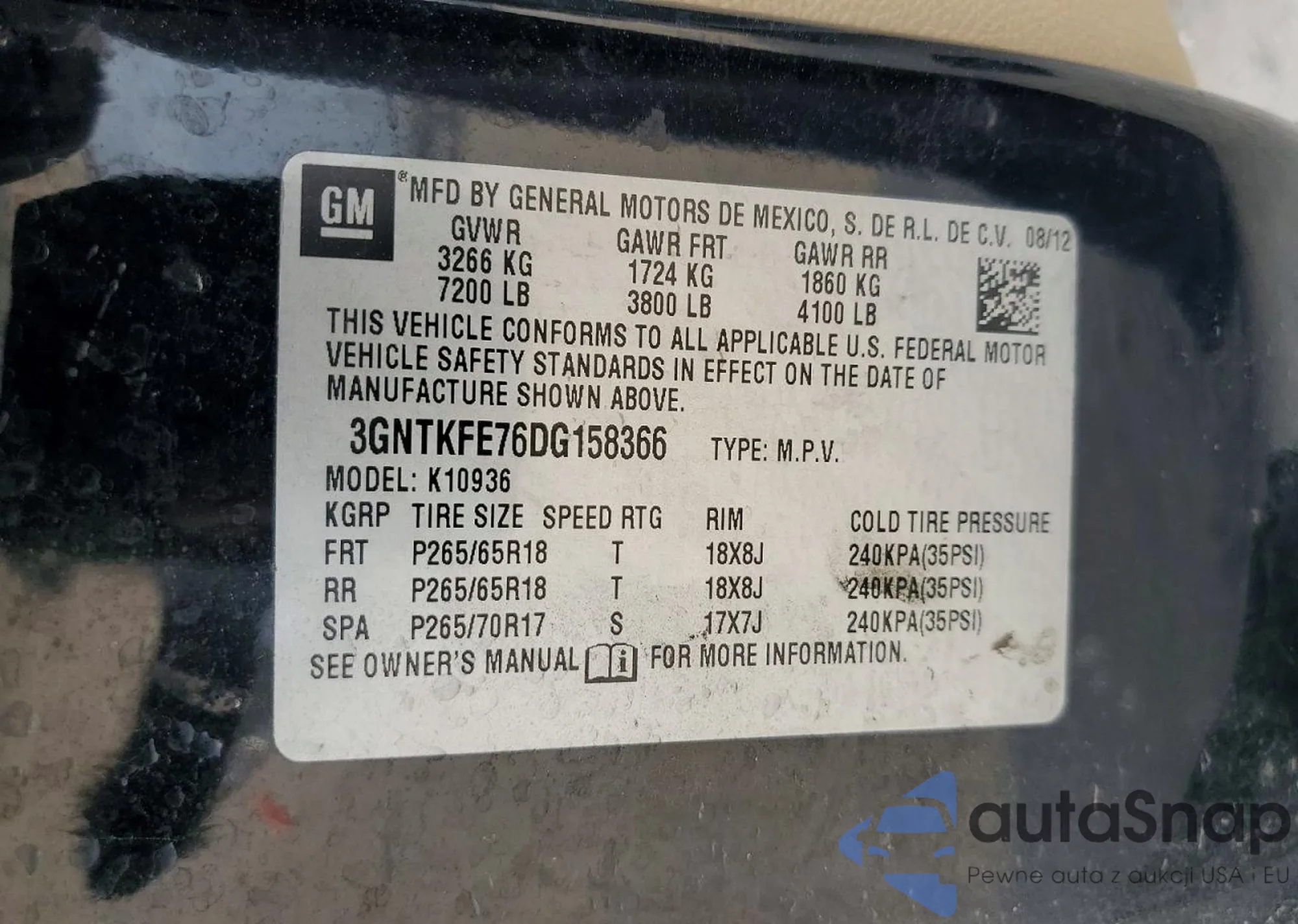LOT: 95158155 VIN: 1FTFW1ET9DFB11960
