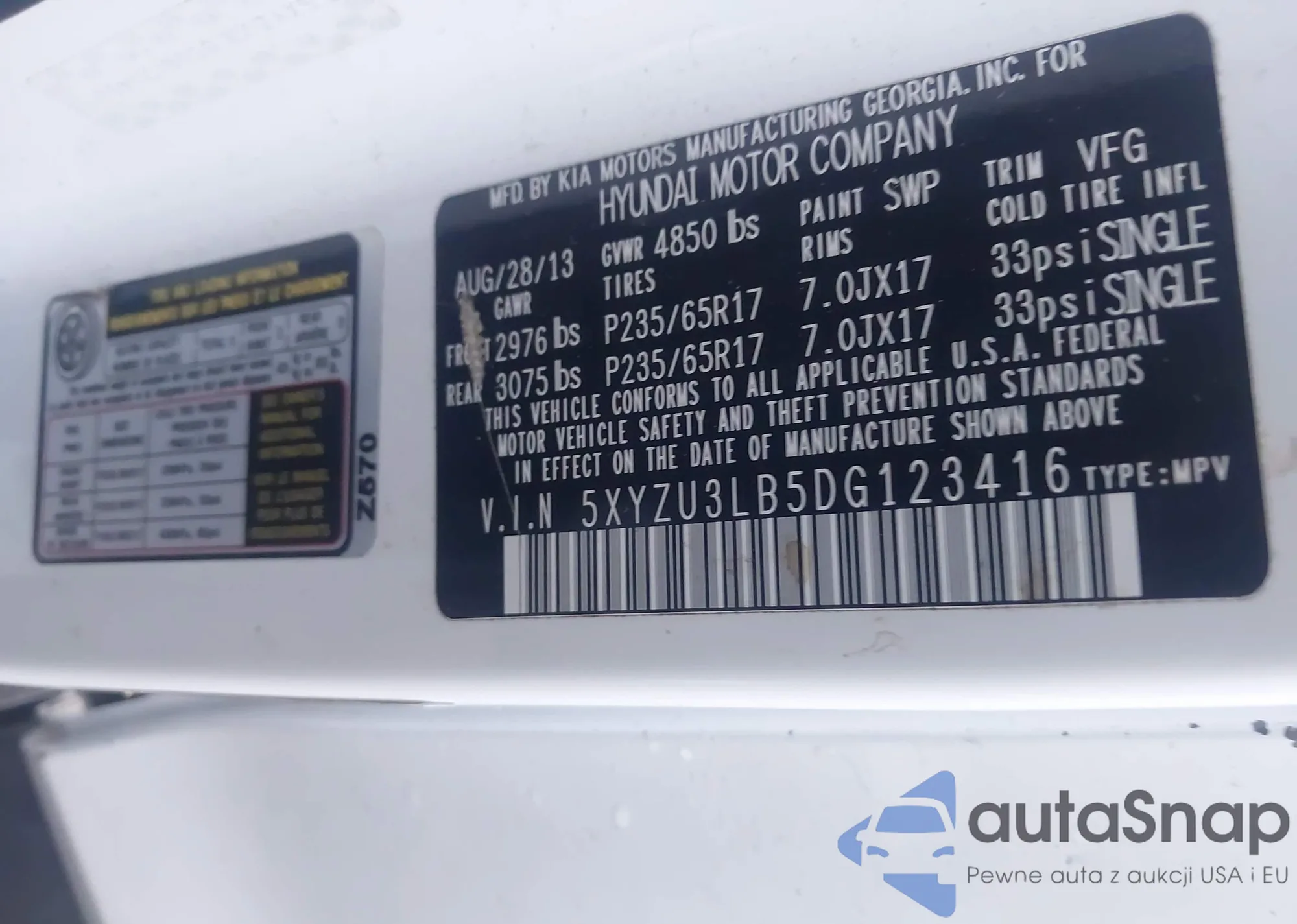• VIN 5XYZU3LB5DG123416