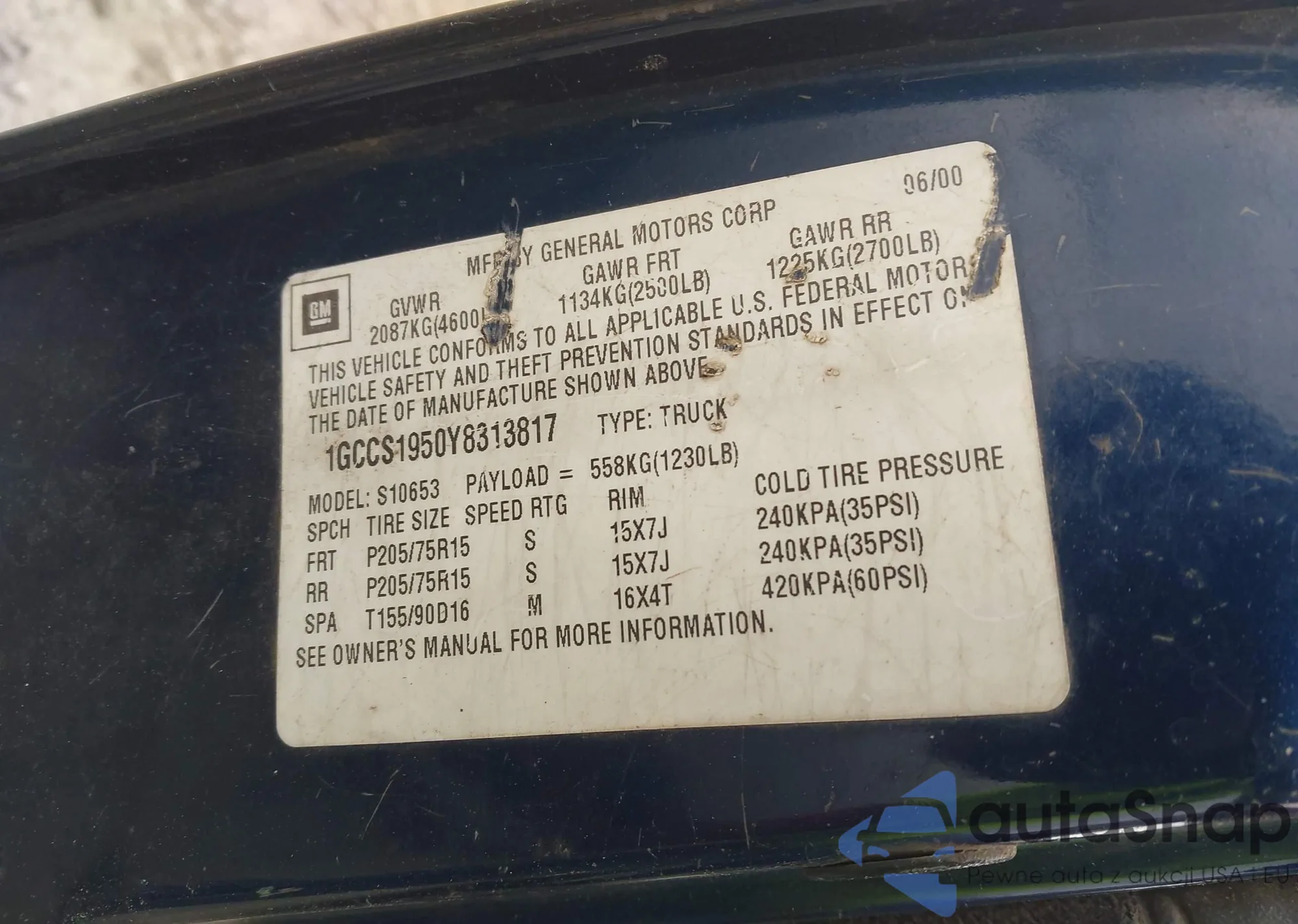 • VIN 1GCCS1950Y8313817