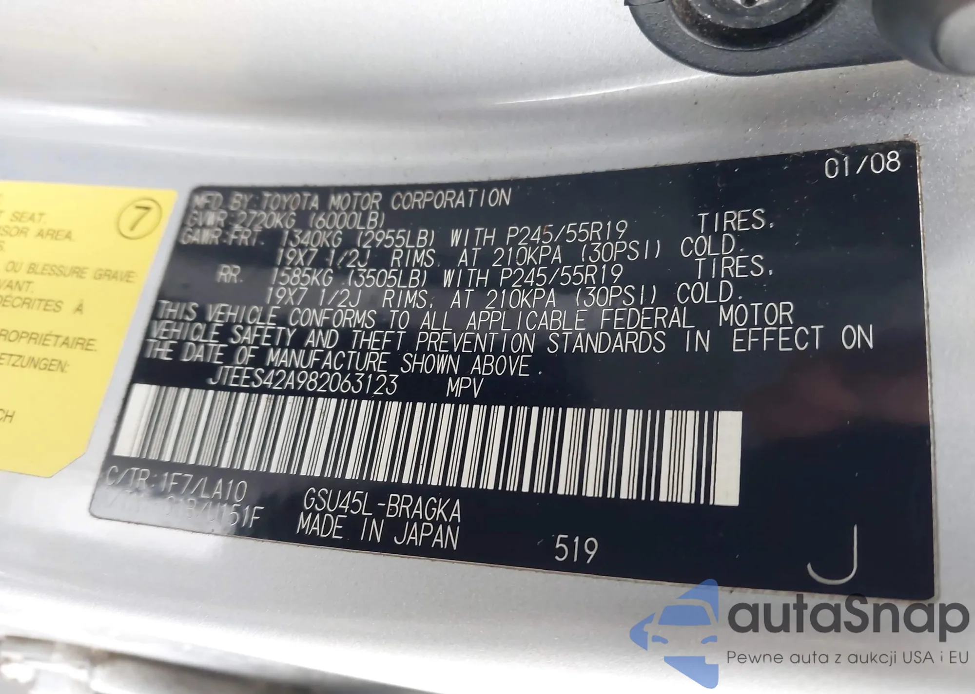 LOT: 44063946 VIN: JTEES42A982063123