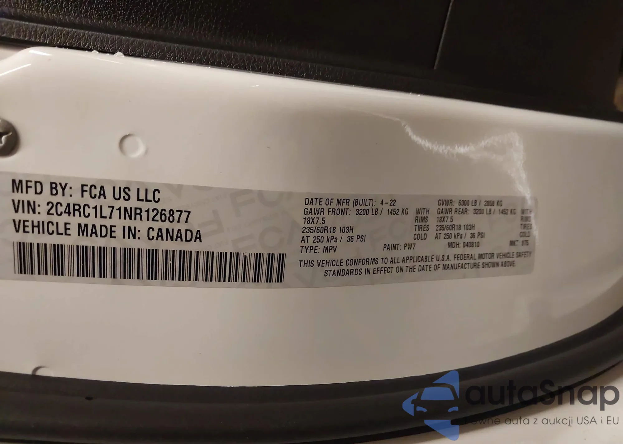 • VIN 2C4RC1L71NR126877