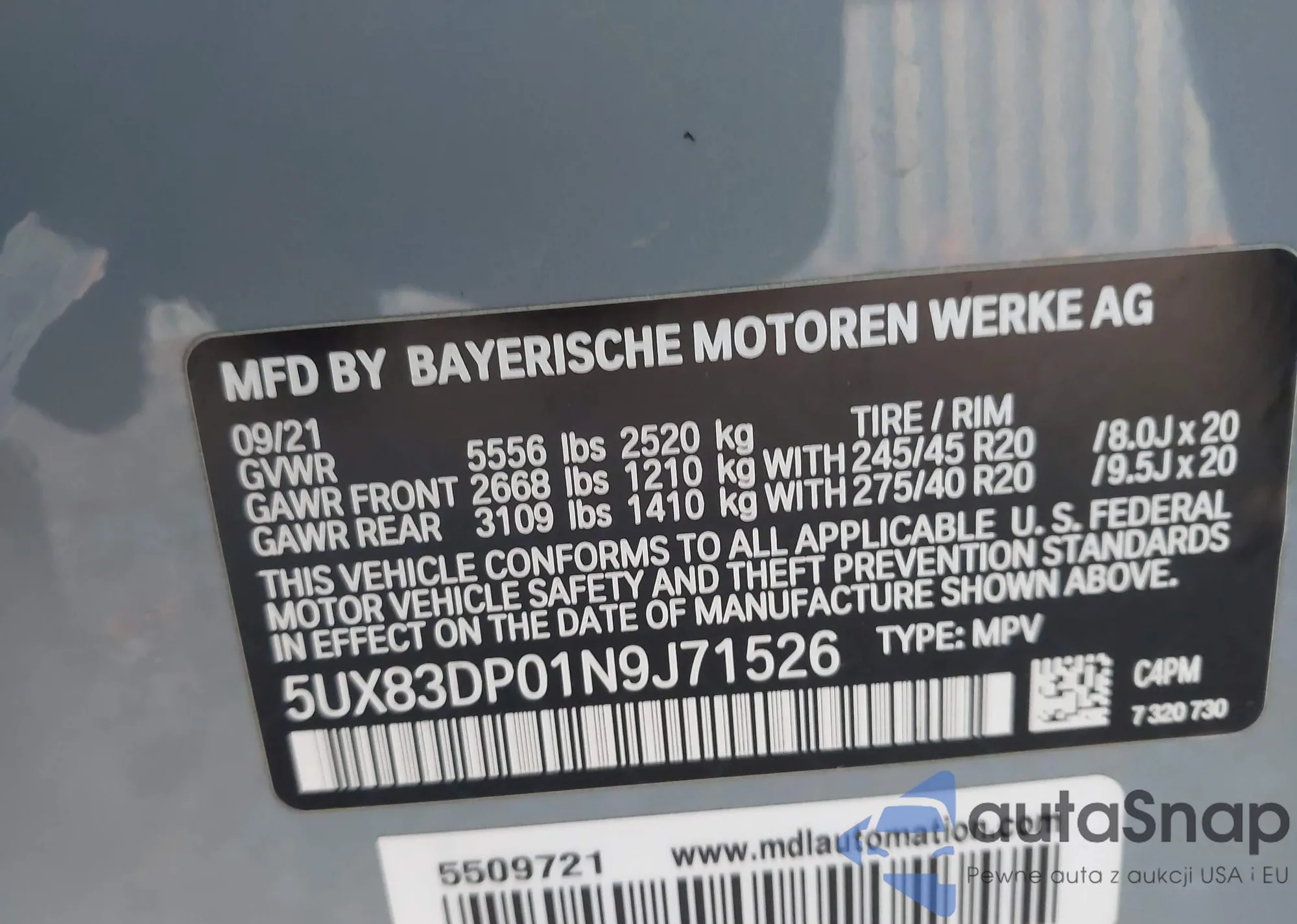 • VIN WBAKF3C55DJ058103