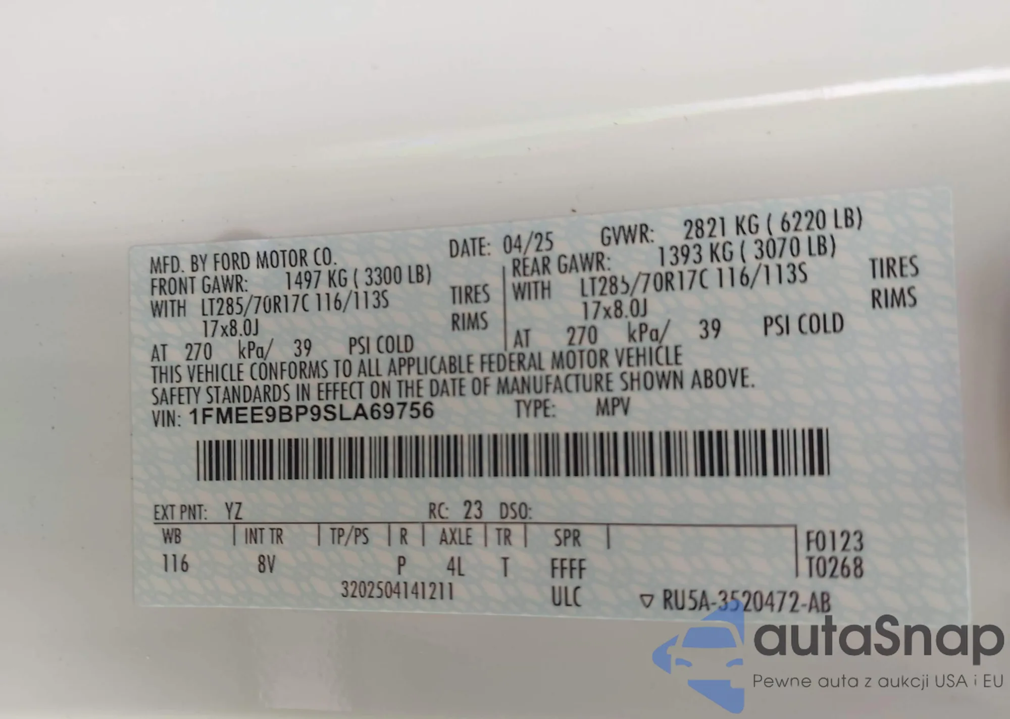 • VIN 1FMEE9BP9SLA69756