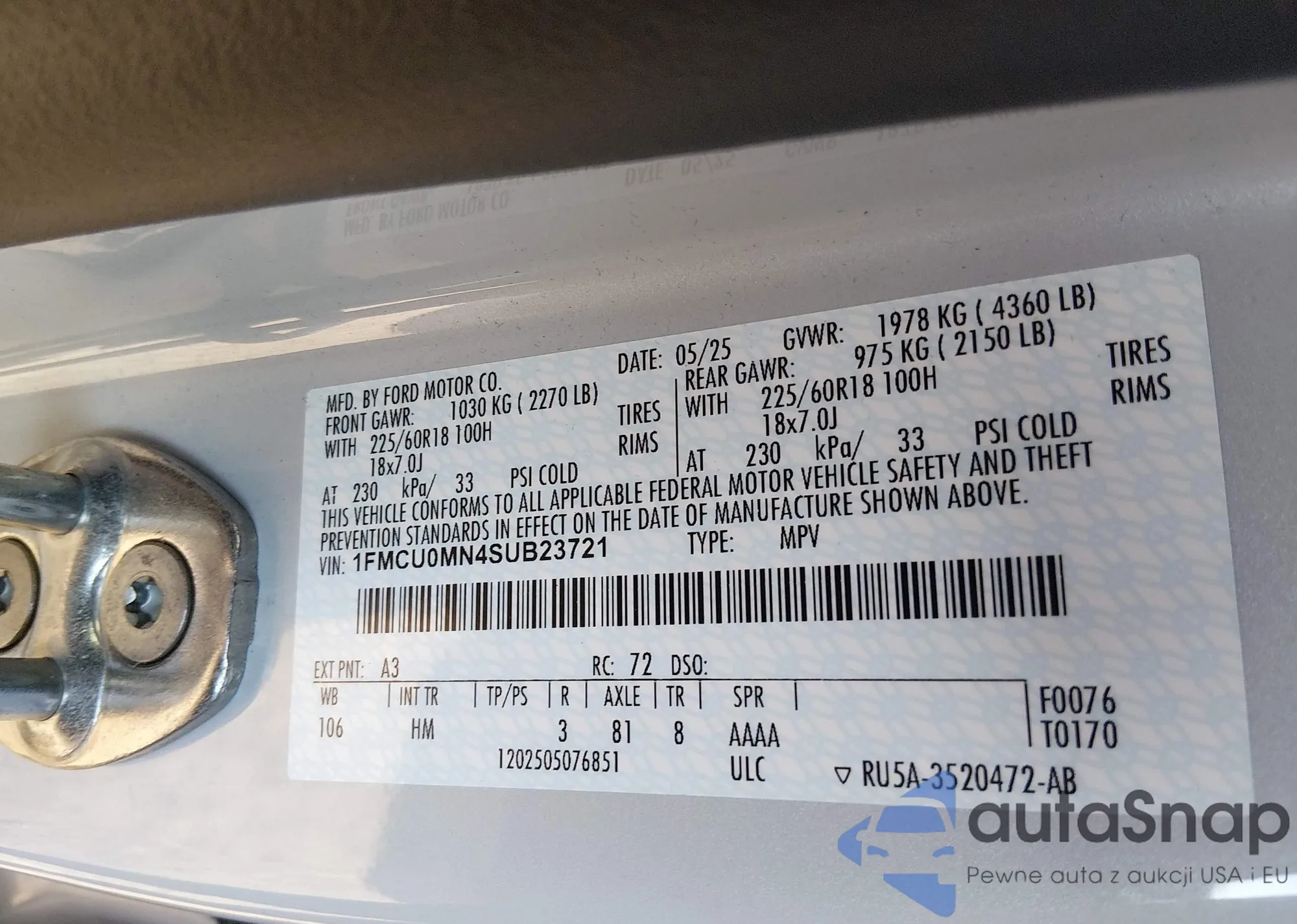 LOT: 44175185 VIN: 1FMCU0G73FUA21815