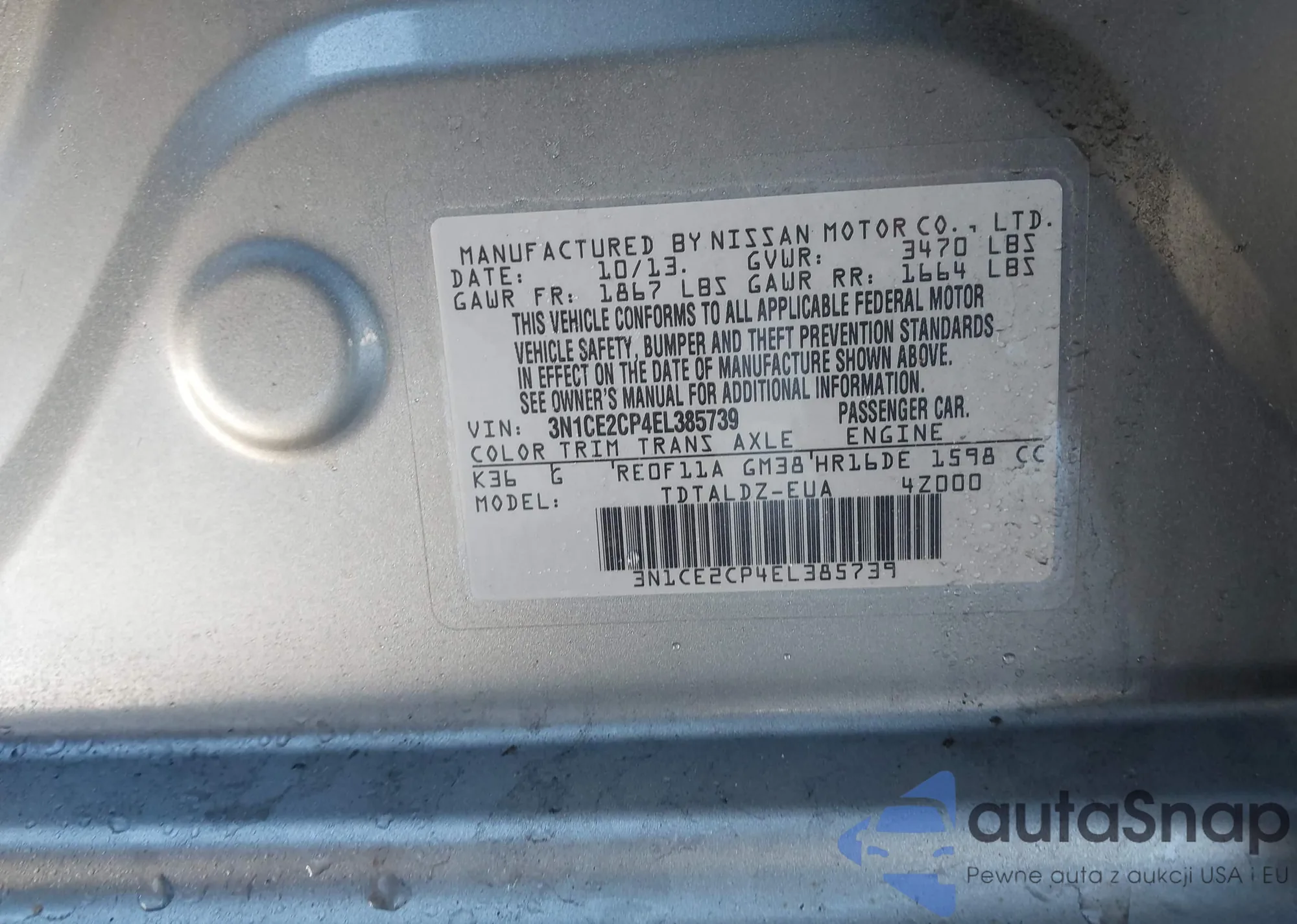 • VIN 1N6ED1EJ2NN634743