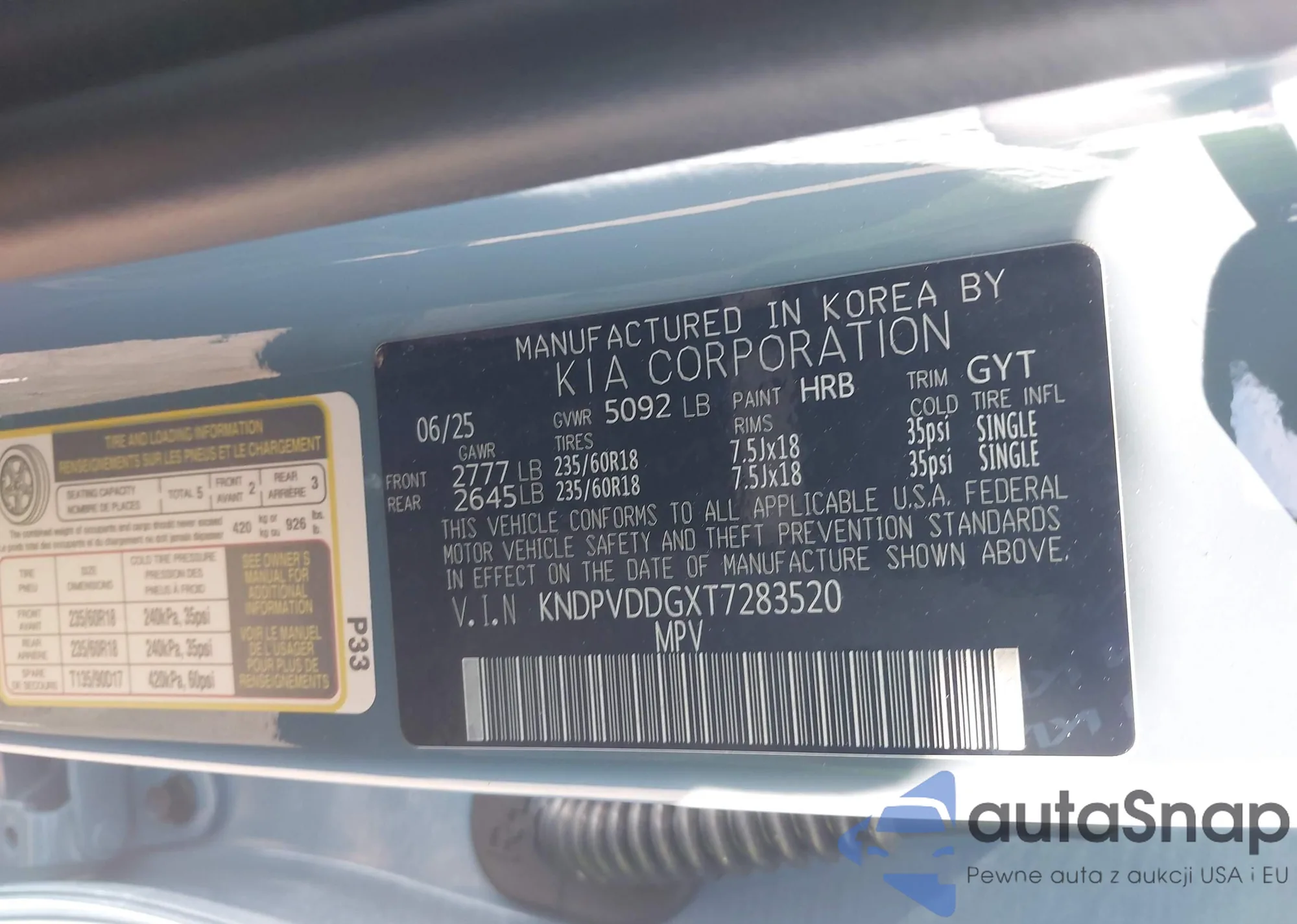 • VIN KNDPVDDGXT7283520
