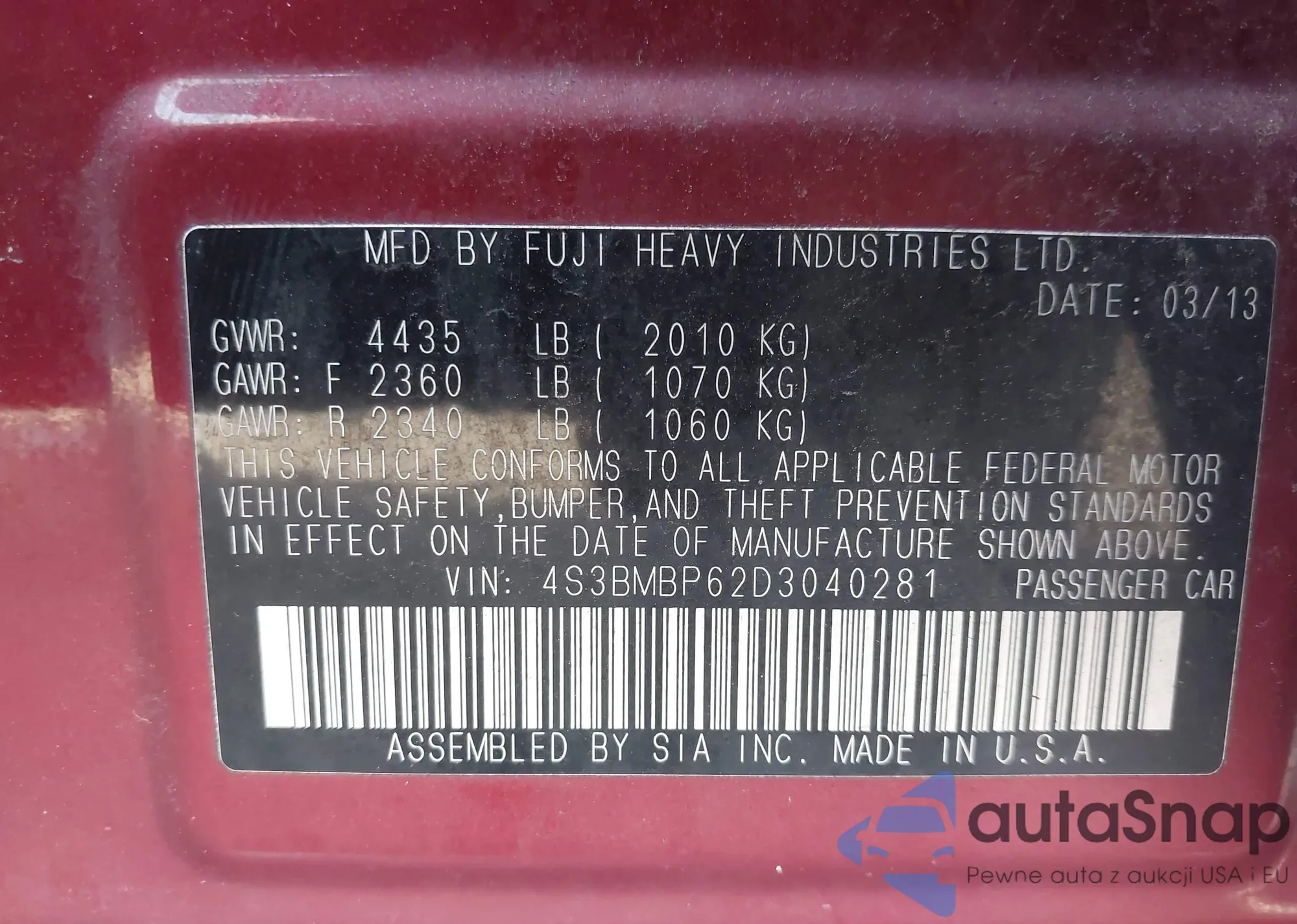 • VIN 4S3BMBP62D3040281