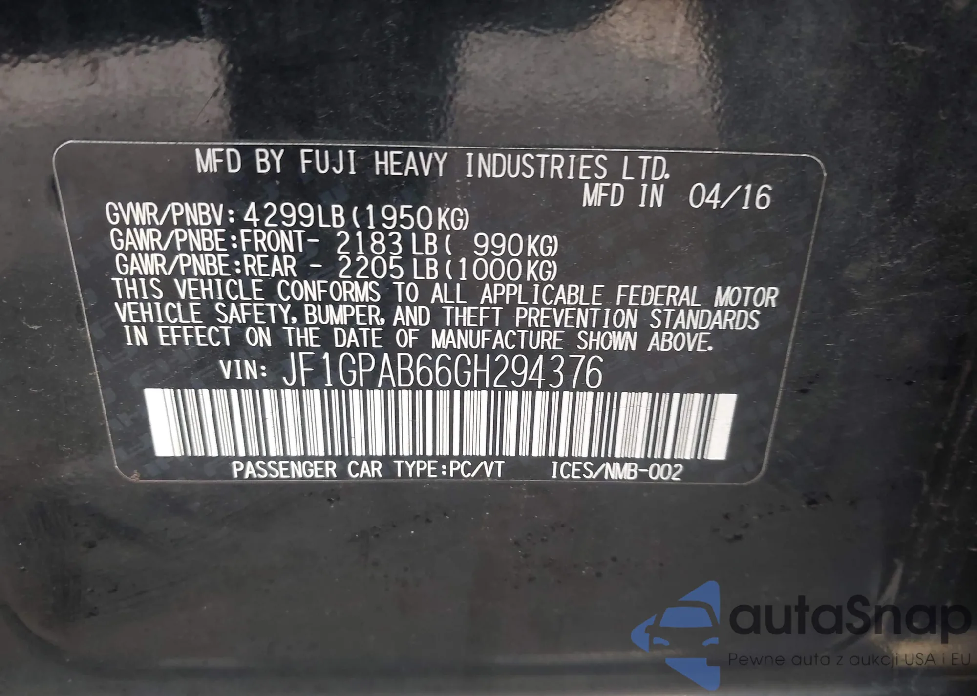 • VIN JF1GPAB66GH294376