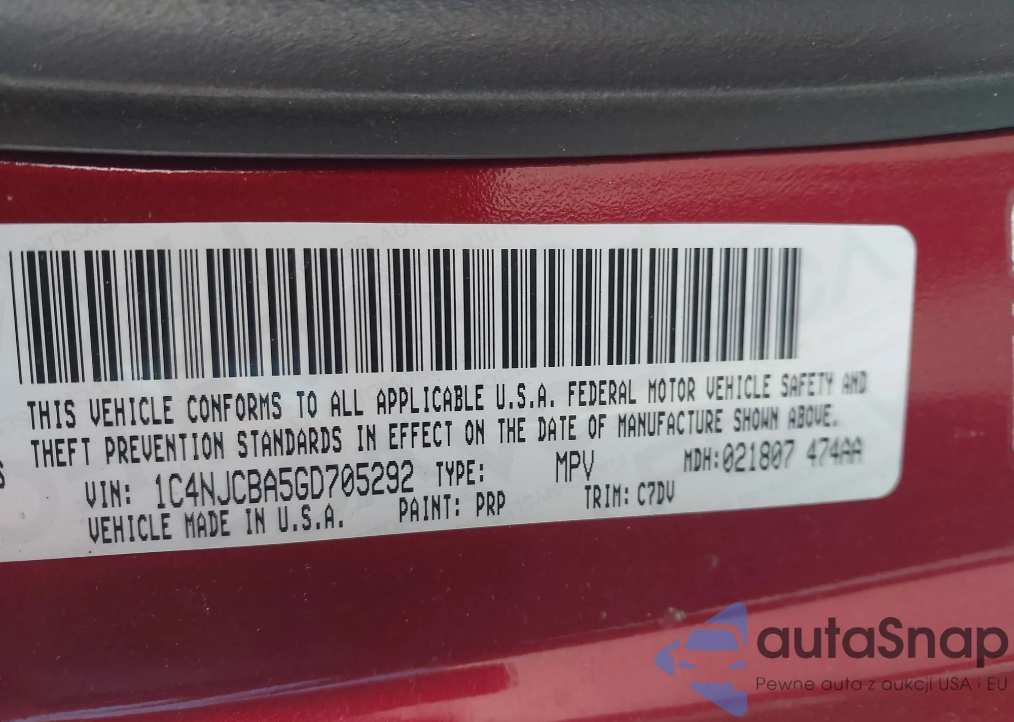 • VIN 1C4NJCBA5GD705292