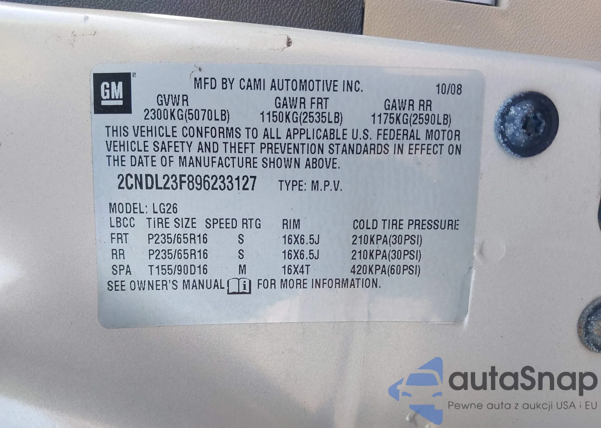 • VIN 2CNDL23F896233127