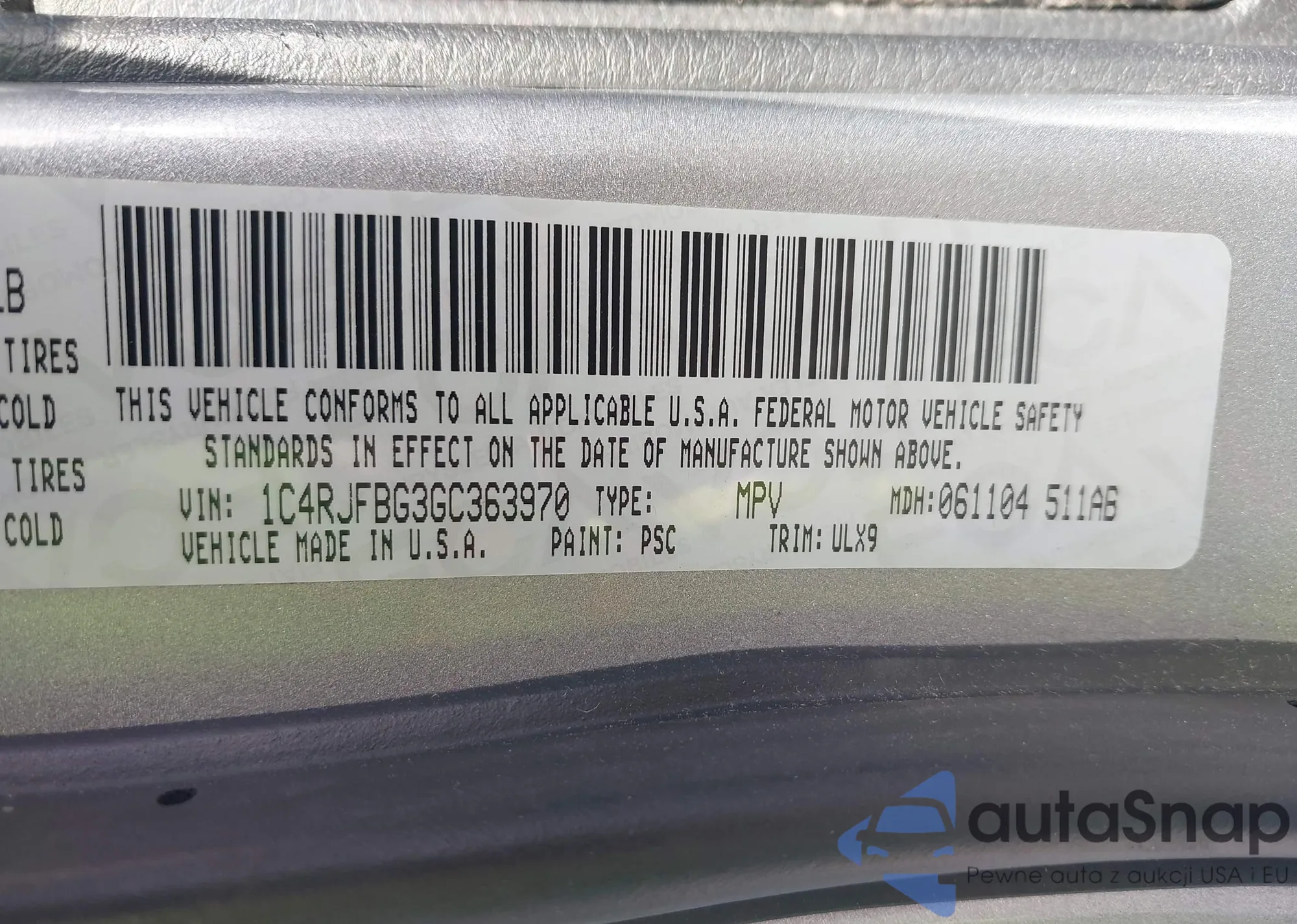 • VIN 1C4RJFBG3GC363970